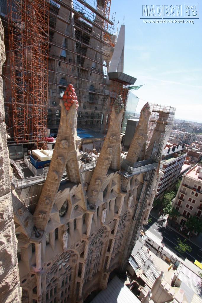 Die Türme der beiden Fassaden (Weihnachts- (östlich) und Passionsfassade (westlich)) sind auch so detailvoll wunderbar  – man muss sich diese Details vor der Kirche unbedingt genau durchlesen.