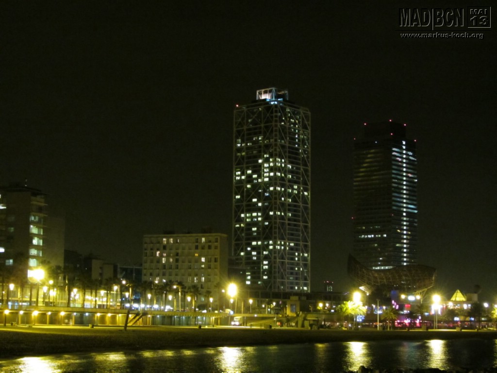 Am Abend feierten wir am Strand Platja Barceloneta in meinen 36. Geburtstag hinein. Erst speisten wir dort in einem der vielen Strand-Bars-Restaurants-Clubs, dem Opium, danach suchten wir uns direkt am Mittelmeer einen ruhigen Platz und stießen an.