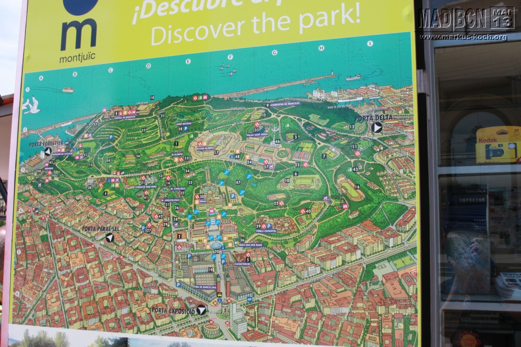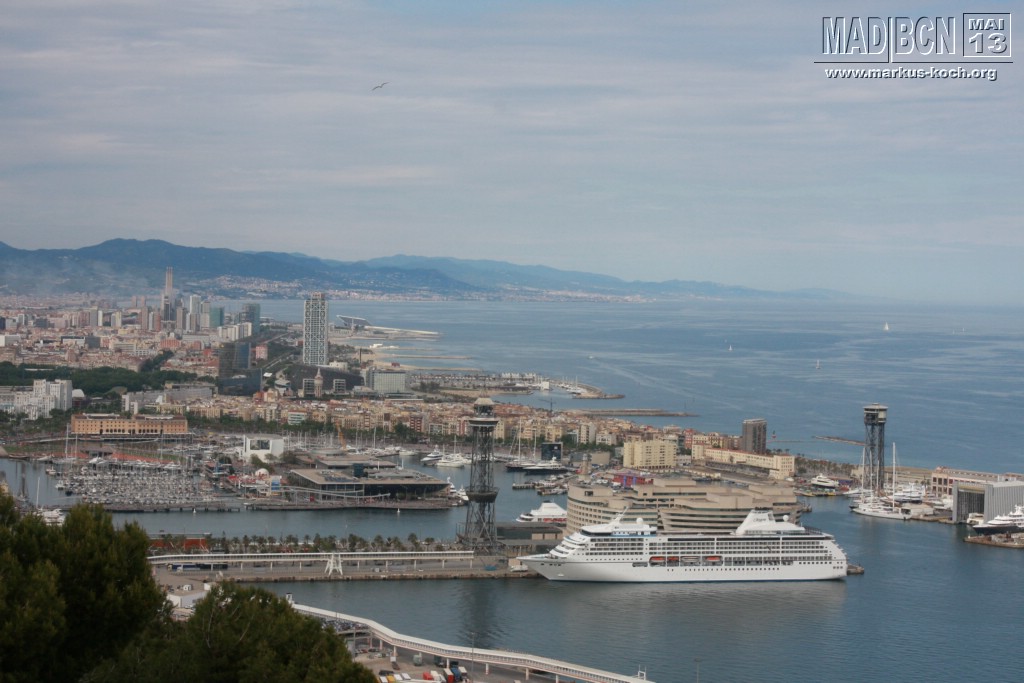 Das heutige Hauptziel sollte der Berg Montjuic sein. Angefangen haben wir am Placa d‘Espanya. An diesem Platz steht eine alte Stierkampfarena (Las Arenas) – jetzt nur noch als Shoppingcenter und Aussichtspunkt fungierend. Ein schöner Ausblick auf den Brunnen des Placas, den zwei 47 Meter hohen Türmen (ähneln dem Glockentrum des Markusdoms Venedigs) und auf das Palau Nacional (Nationalpalast). Dort liefen wir dann auch den Berg hinauf am Nationalpalast und dem Olympiagelände (1992) vorbei bis zur Seilbahn zum Castell de Montjuic auf dem höchsten Punkt des Bergs. Es war ein fantastischer Ausblick von da oben – die Stadt, der Hafen, der Flughafen, einfach alles von Barcelona! Genial – das ist auf jeden Fall ein Muss!