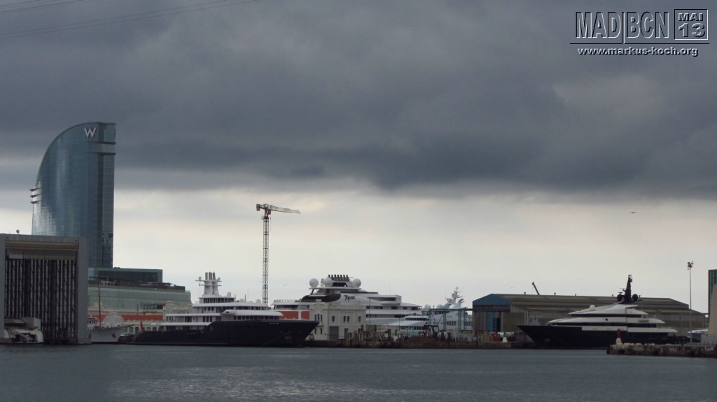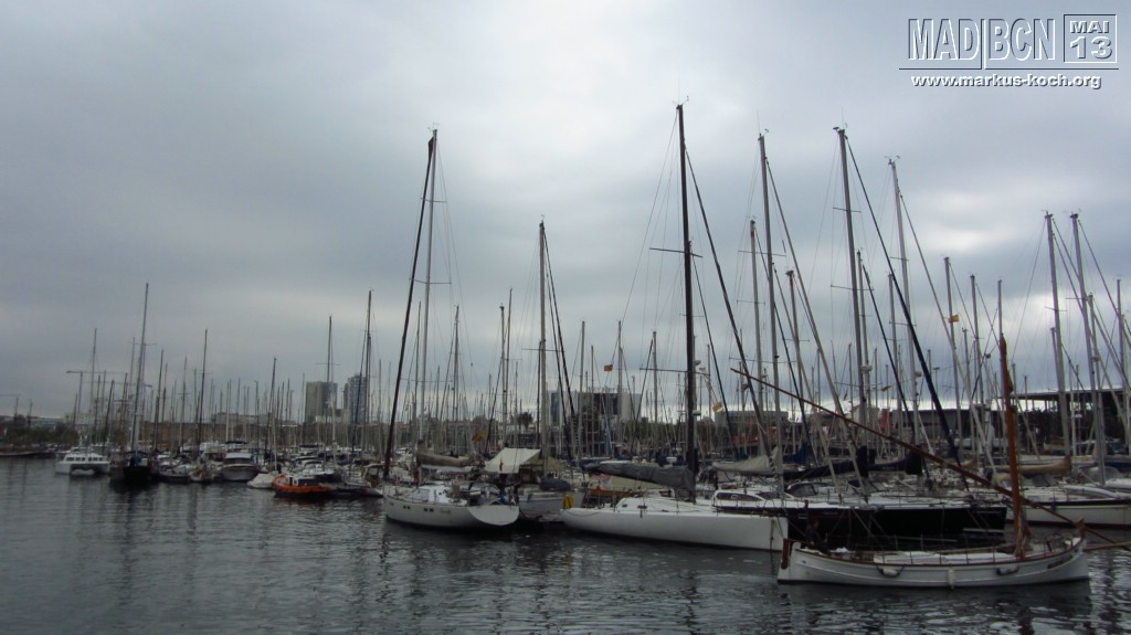 Fünfter und letzter Tag in BCN – es hat wohl Nachts ganz wenig geregnet und die Wolken hingen noch tief. Unser Plan war ohnehin, dass wir im Hafen in einem Shoppingcenter „Maremagnum“ noch ein bisschen (erfolgreich) Schlendern. Nach dem Mittagessen (Klasse Burger am Placa de’l Angel) ging es mit der U-Bahn nochmal zum Strand um ein wenig die Sonne, die mittlerweile raus kam, zu genießen.