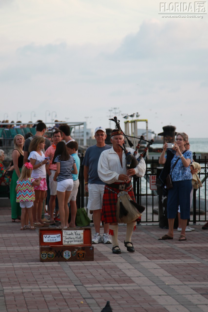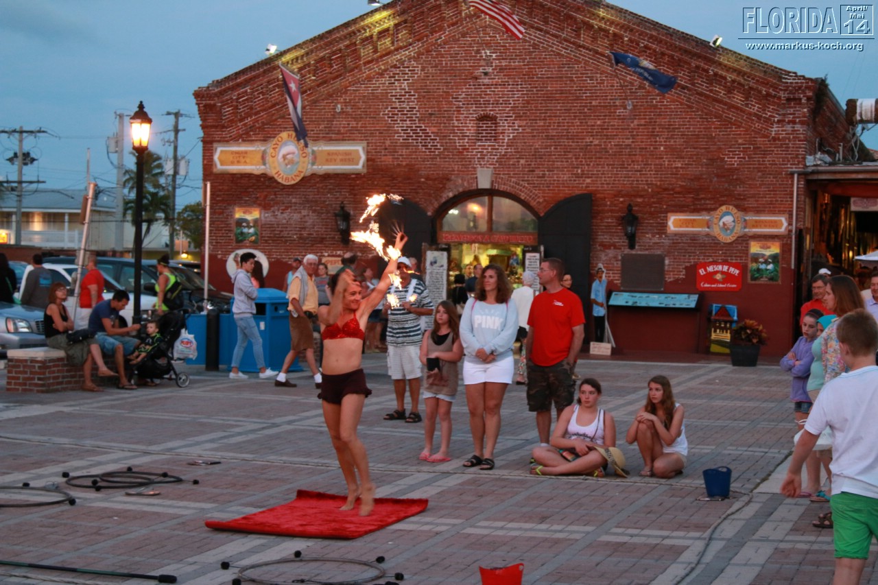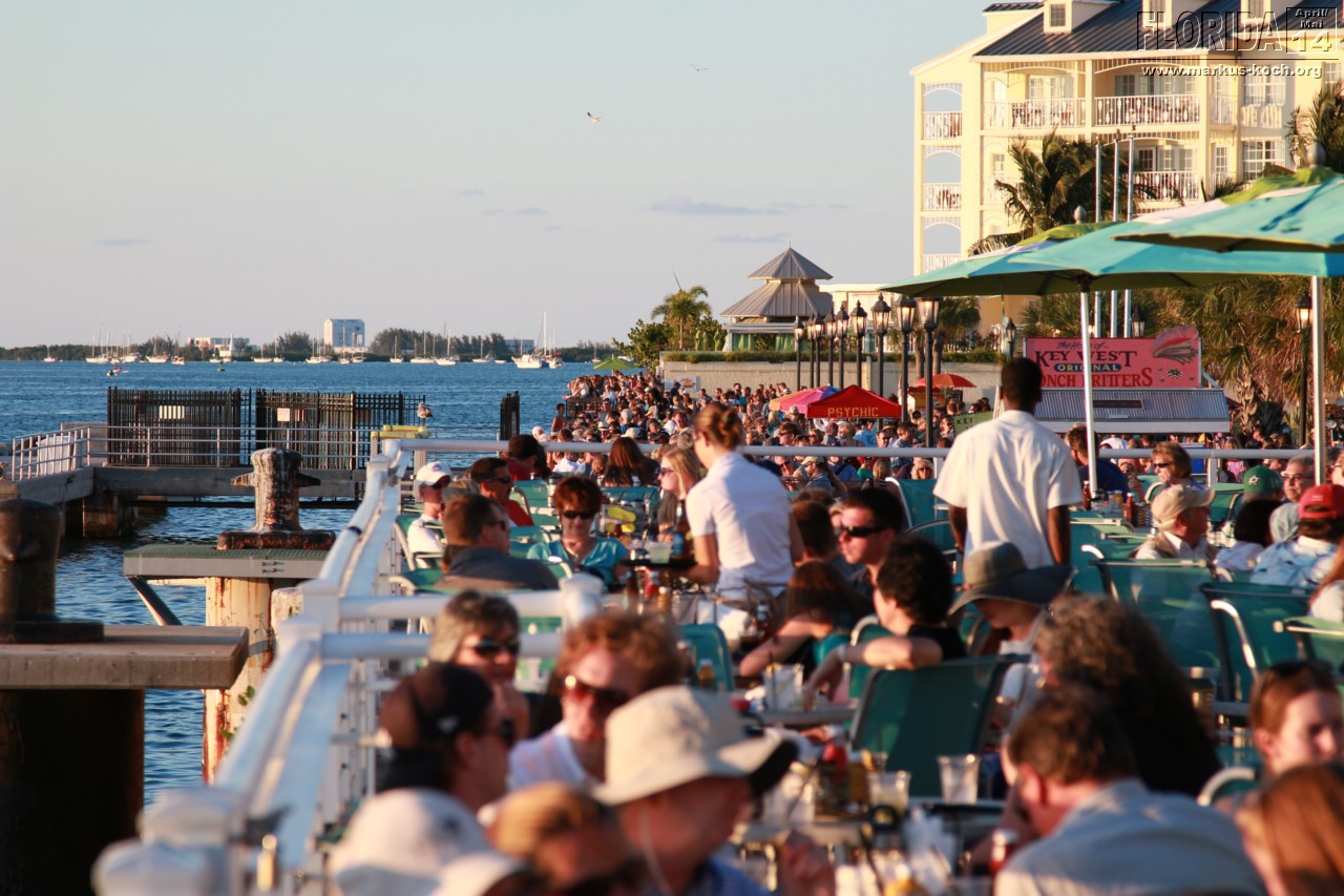 Abends zogen wir auf Beach Cruiser Bikes, die wir uns für hier gemietet haben, zum Mallory Square um den berühmten Sonnenuntergang Key Wests anzuschauen. Auf dem Platz waren Gaukler und viele kleine Attraktionen zu sehen. Abendessen beim Mexikaner in der Nähe der sehr belebten Duval Street mit anschließendem Besuch in einem Irish Pub mit Live-Musik. In diesem war ich 2010 auch schonmal mit der Gang 😉