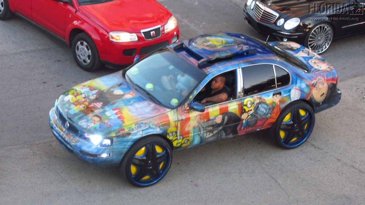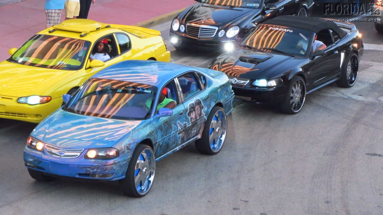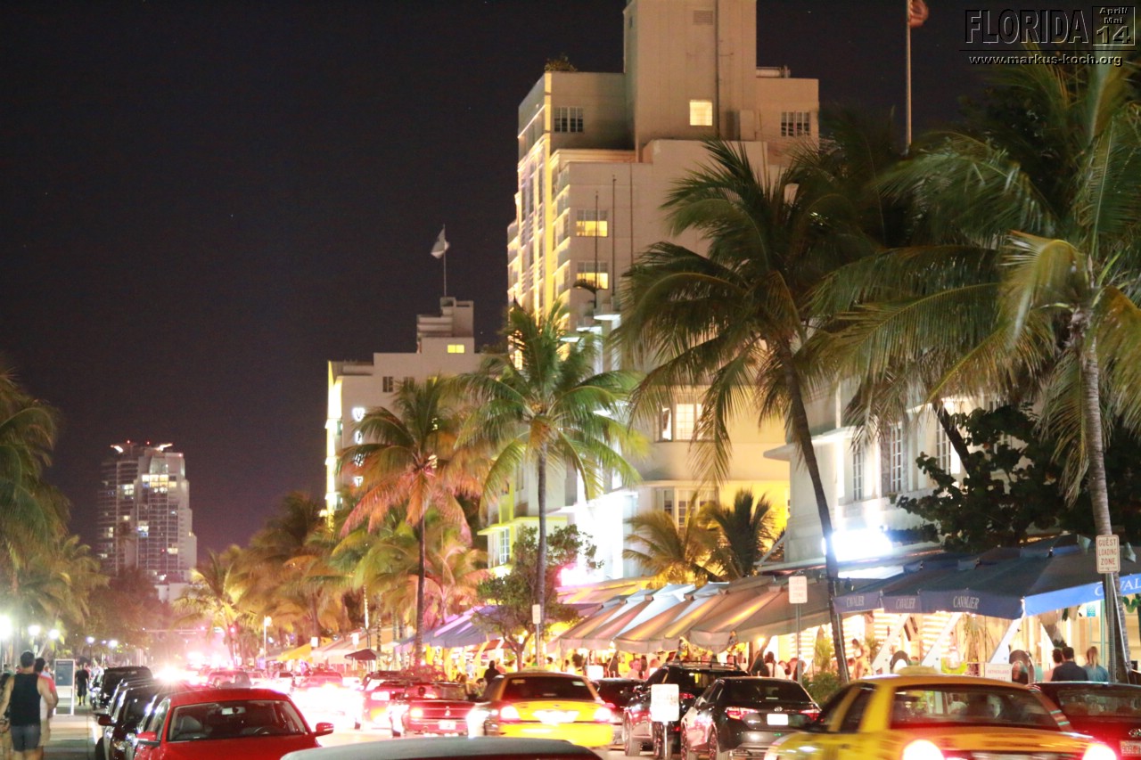 Aus dem Grund hat es dann auch etwas gedauert, bis wir direkt an unserem Hotel „Bentley“ am Ocean Drive waren. Aus unserem Fenster des Hotels oder von oben am Pool konnten wir das lustige Treiben schon erkennen. Hochgebockte Autos, aus denen der Gangster-Sound vibrierte. Es war am Ocean Drive die Hölle los, wir sind mal hoch und wieder zurück gelaufen.