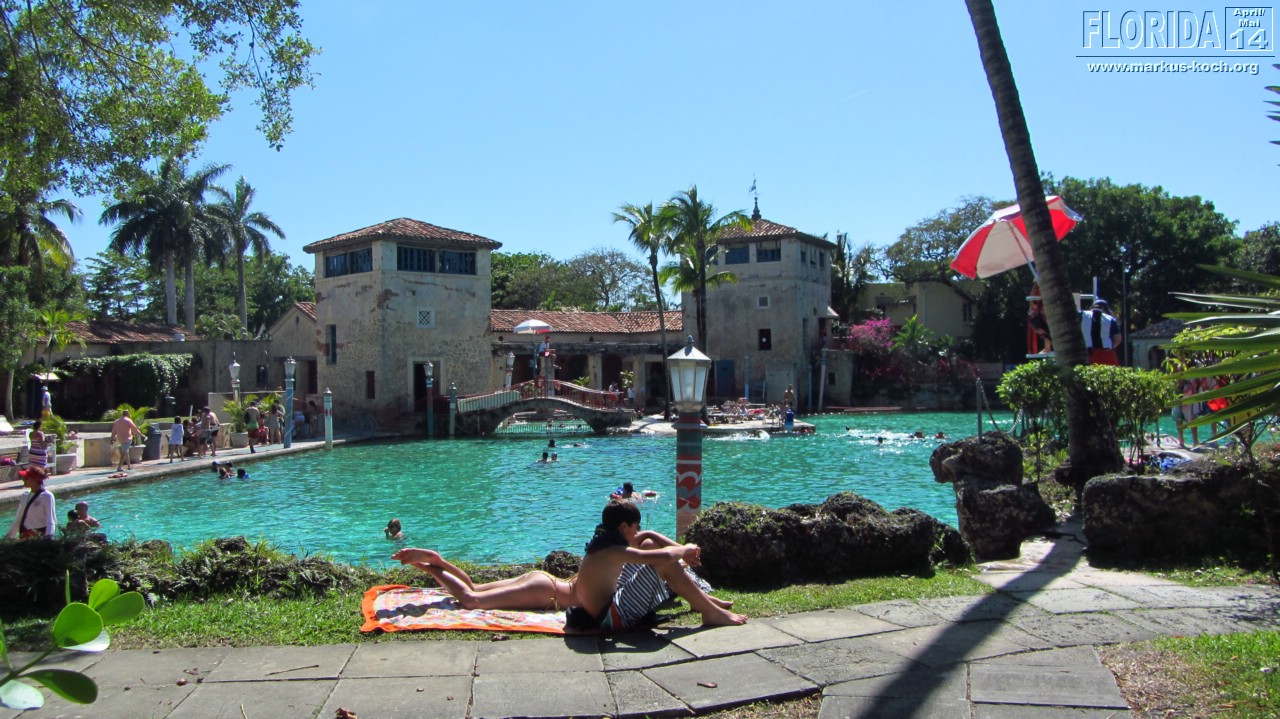 In Miami angekommen schauten wir zunächst ein paar Highlights an – CocoWalk, Biltmore Hotel – in dem wir auch drinnen waren, abgefahren groß! Venetian Pool – in dem dieses Mal sogar Wasser war! Cruisen durch Downtown nach Key Biscane. Überall war das Leben aktiv – lag wohl hauptsächlich daran, dass Sonntag war.