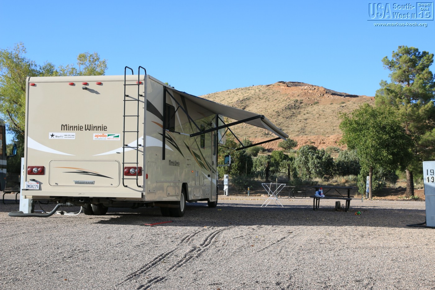 Zwischen 9 und 11 Uhr muss das WoMo zurückgegben sein. Davor standen noch entleeren der Grey/Black Tanks, 75 Meilen und das Mietauto der nächsten Tage bei Alamo holen auf dem Plan.