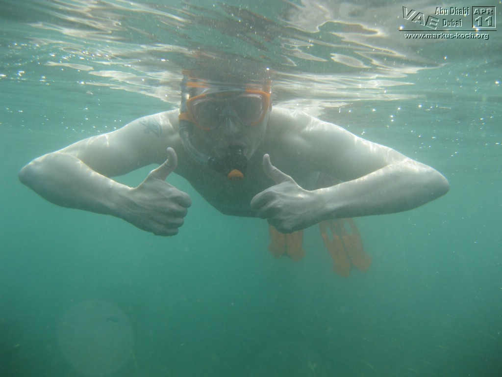 Vormittags wurde der Beach von Abu Dhabi und das blau-türkise Meerwasser getestet – Test mit Bravour bestanden 😉