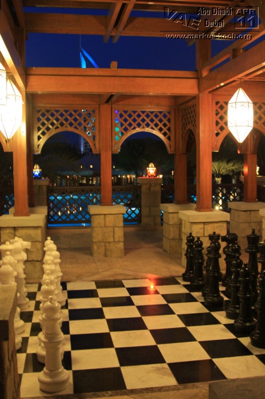 Die Gartenanlage erinnert ein wenig an Venedig. Von Hotel zu Hotel wird man in Abras – statt mit Gondeln – gefahren. Einfach so tun, als ob man ein Hotelgast ist und sich aufs Boot begeben und den Namen des nächsten Hotels als Fahrtziel angeben. Es fragt keiner nach Hotelkarte oder Zimmernummer. Einfach die Fahrt auf den Kanälen in der wunderbaren Kulisse von 1001 Nacht genießen. Wir sind sogar mehrmals hin und her gefahren.