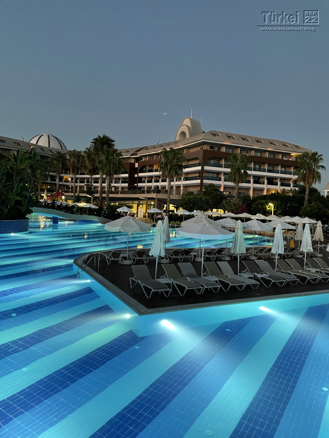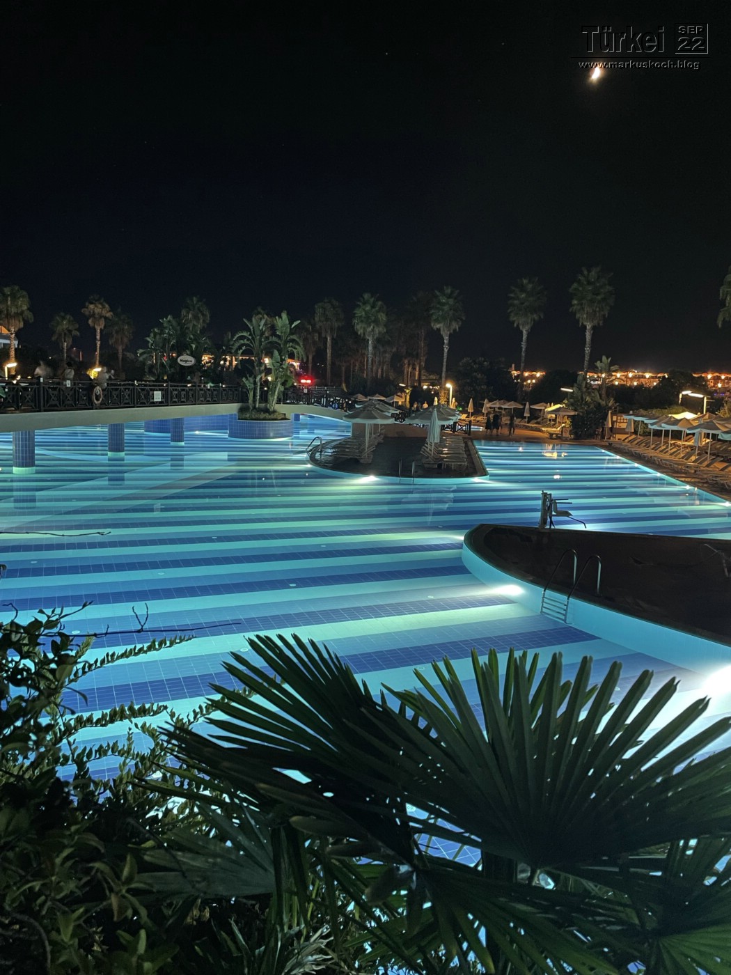 Die Pools waren abends auch schön anzusehen. Jedoch war im Eingangsbereich wieder diese irre laut & klirrende Musik. Das hat schon etwas genervt, weil es einfach nicht stimmig war. Dann gings auch schon ins Bett.