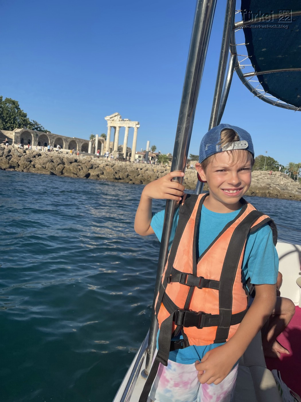 Am letzten vollen Tag fuhren Luca & ich noch mit einem Boot an der Küste entlang bis nach Side. Dort haben wir Meeresschildkröten gesehen.
