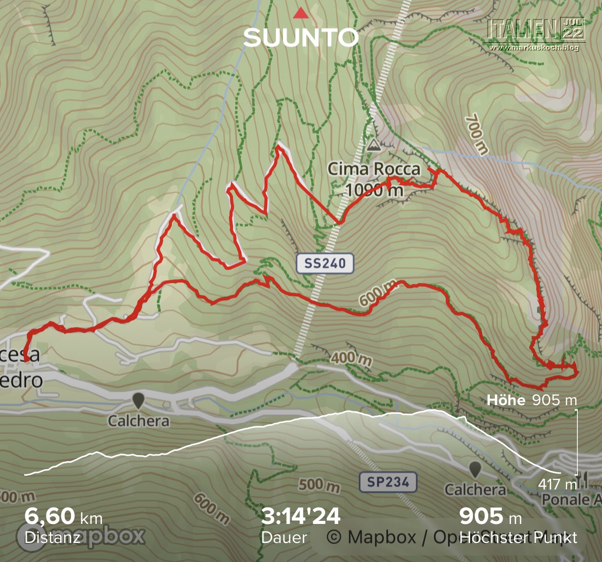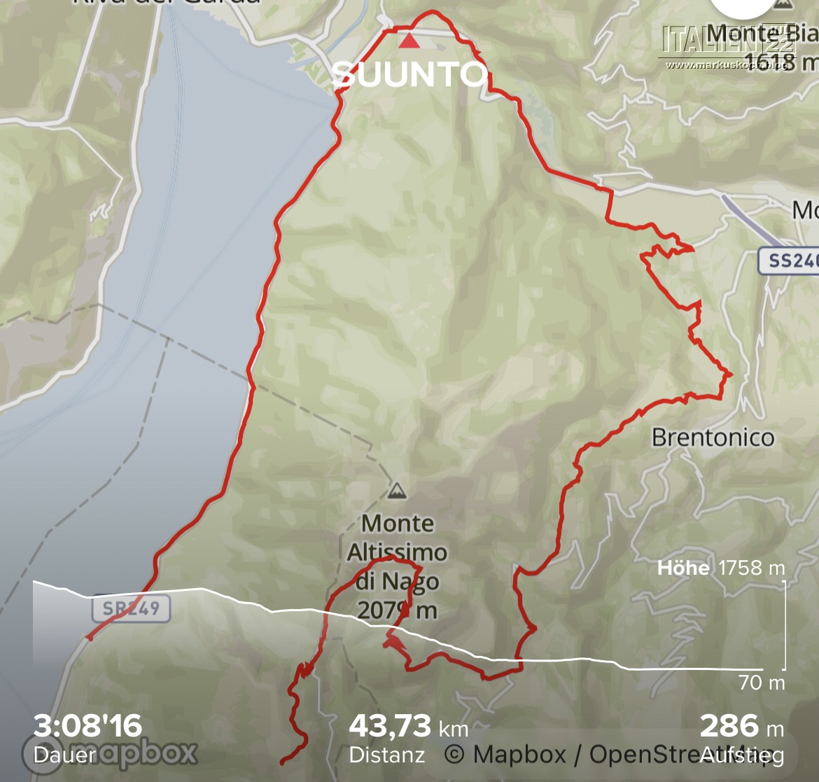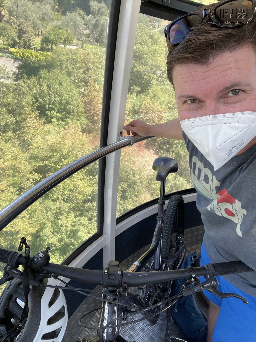 Am Nachmittag lieh ich mir ein Fully Mountainbike, fuhr mit der Gondel zum Monte Baldo hoch und mit dem Rad eine 40 km Downhill Strecke zurück nach Malcesine.