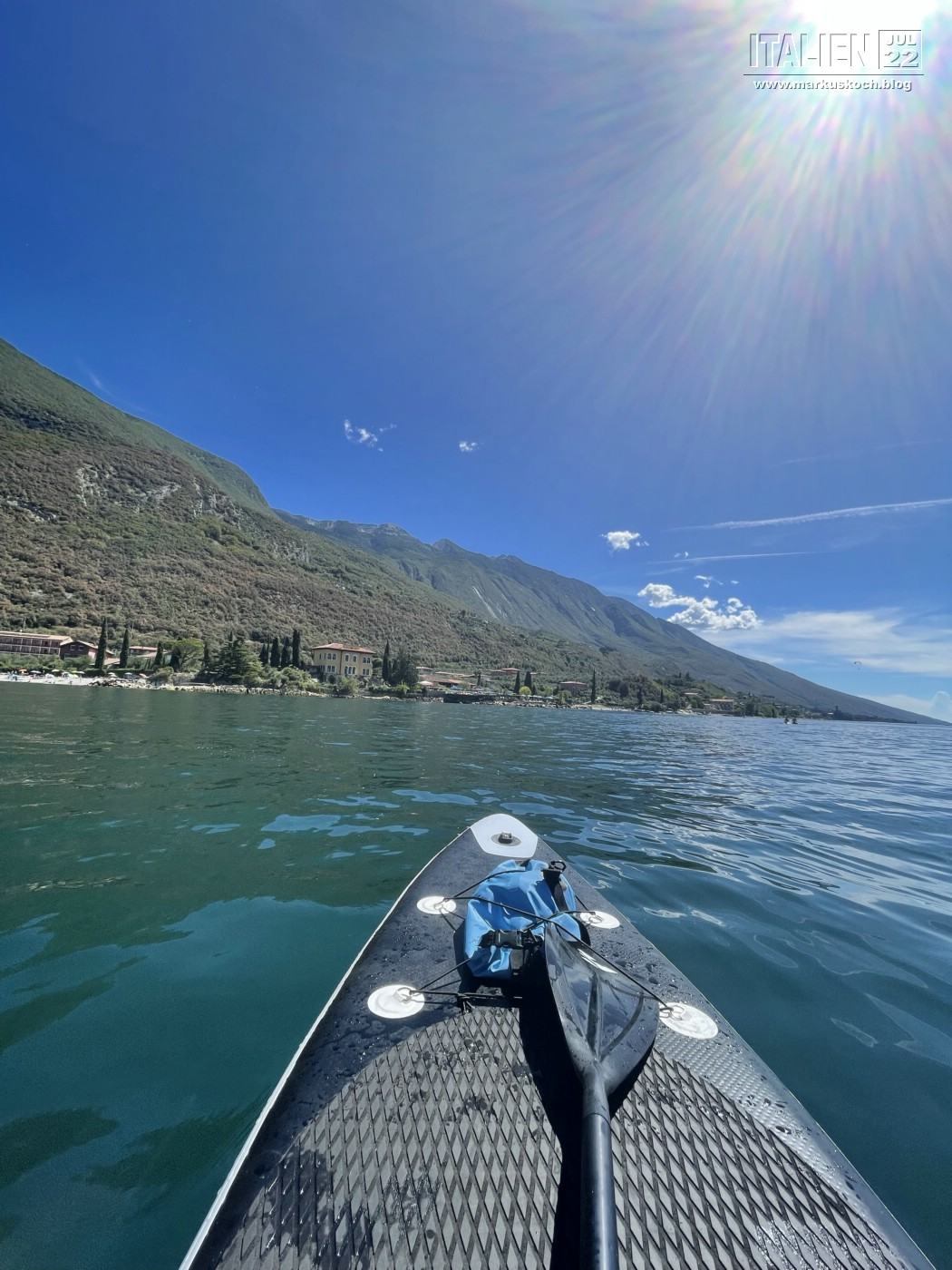 Am Vormittag machte ich alles sehr gemütlich und fuhr eine Runde SUP auf dem Lago di Garda.
