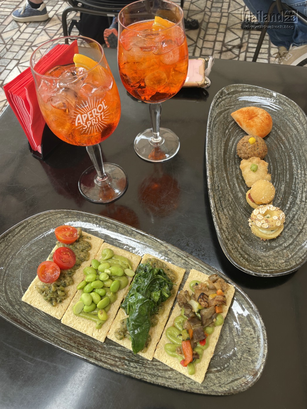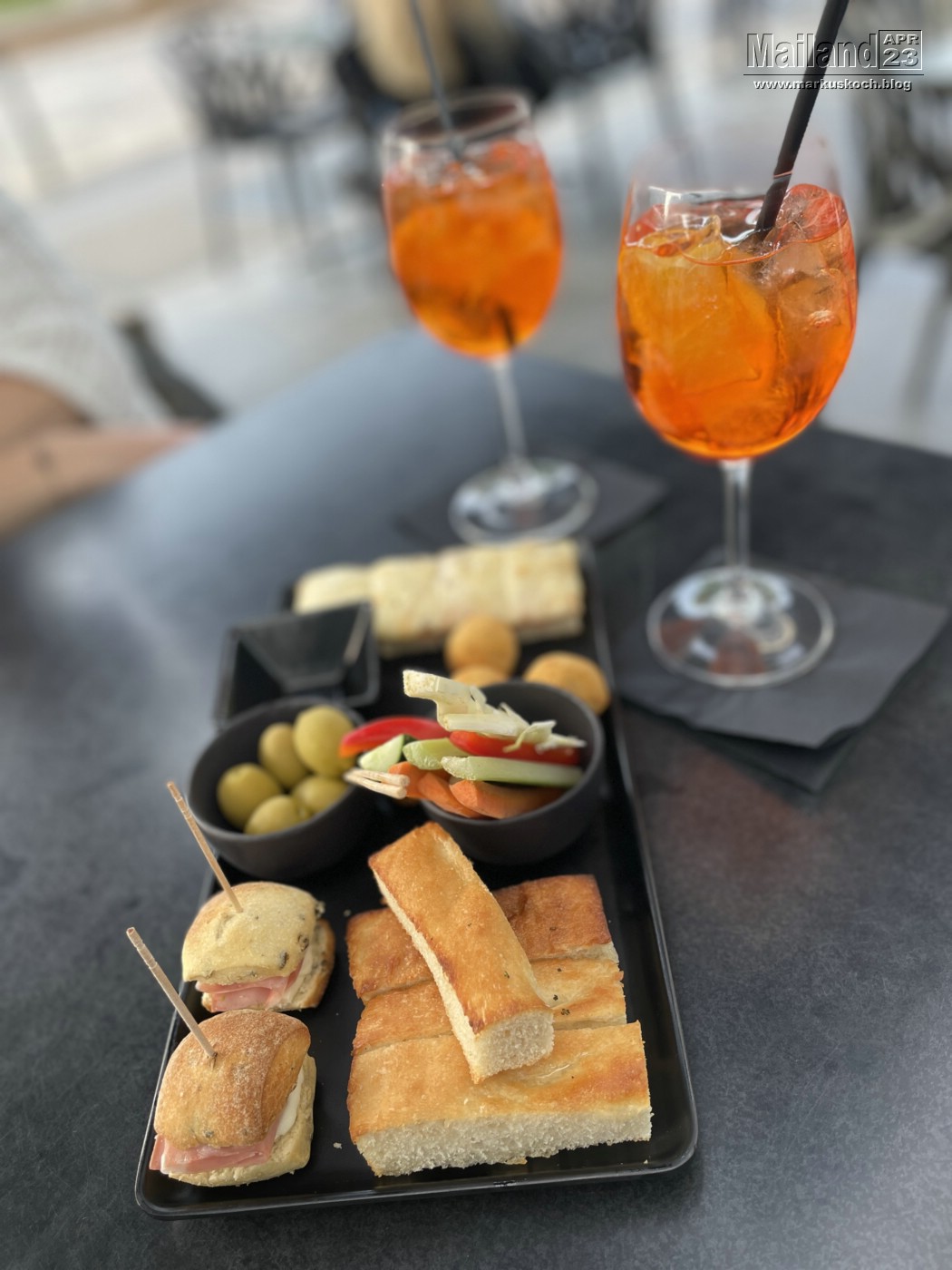 Zweiter Tag. Was wir nicht wussten, zu jedem Wein oder Aperol Spritz gibt es zu bestimmten Zeiten ein „Platterl“ an Tapas dazu. Da braucht es teils gar nicht mehr Abendessen zu gehen.