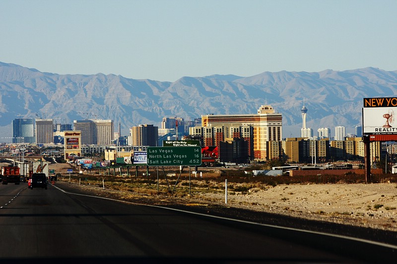 Als wir durch den Park durch waren war es nur noch kurze Zeit bis nach Las Vegas. Auf dieser Strecke merkte man diese typischen langen Strecken, wo weit und breit nichts mehr um einen herum ist…