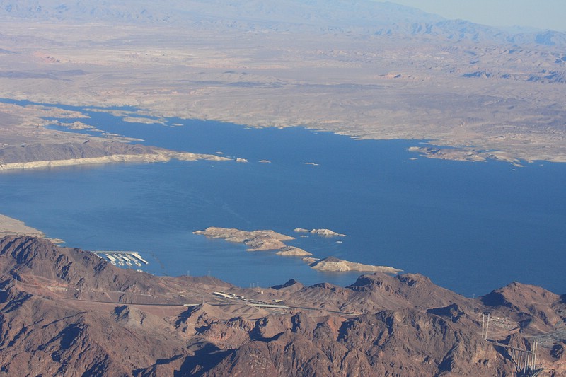 Der Bus fuhr dann wieder zum Mini-Airport zurück, wo unsere Maschine um ca. 12.30 p.m. dann schon wieder Richtung Las Vegas zurück flog. Der Ausblick war auch sehr sehr geil! Nochmal für ein Stück über den Grand Canyon, vorbei am Hoover Staudamm (Lake Mead) mit Blick auf LAS zum Flughafen (war aber nicht der Grosse, sondern ein kleinerer von den Dreien in LAS).