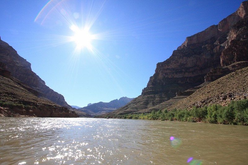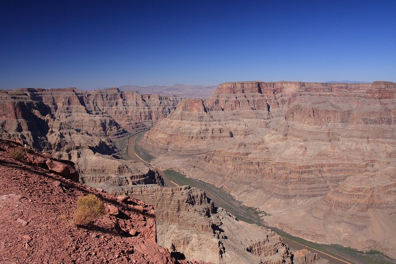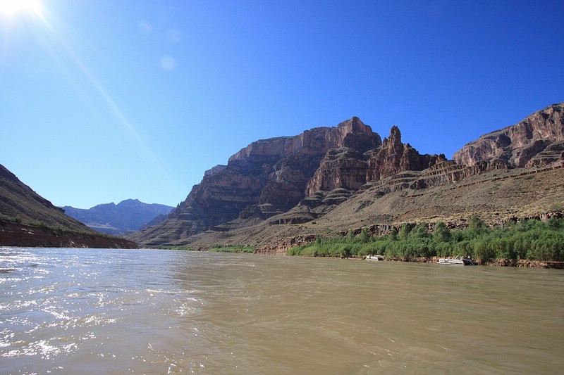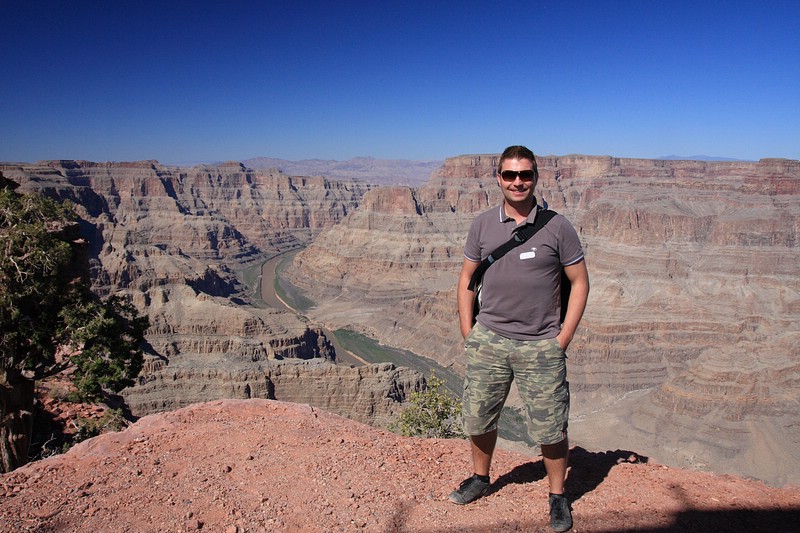 Der Tag war dann doch nicht so anstrengend, wie ursprünglich angenommen. Nachdem ich um 6 a.m. von King Airlines am Flamingo abgeholt wurde, startete die Einmotorige Propellormaschine um 8 a.m. zum Grand Canyon West. Von dort wurde meine Reisegruppe, die mit 4 Leuten recht überschaubar war – es waren 3 ältere UK’ler dabei – mit dem Heli ins Tal zum Colorado River geflogen. Sehr beeindruckend, wenn man dieses Wunderwerk der Natur betrachtet!!!! Auf dem Colorado River wurden wir mit einem kleinen Motorboot eine Meile Flußaufwärts gefahren und liesen uns zum Ausgangspunkt zurücktreiben. Yeah! Ich war auf dem Colorado River – glaubs selbst noch gar nicht so 🙂