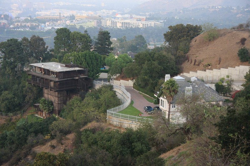 Zum Sonnenuntergang fuhren wir den Mullholand Drive entlang. Auch dort wieder ohne Ende Villen am Straßenrand. Der Blick über L.A. wäre auch super gewesen, wenn nicht eine Smog-Dunst-Glocke über der Stadt gewesen wäre. Von dort oben sah man auch die Universal City mit seinen Studios.