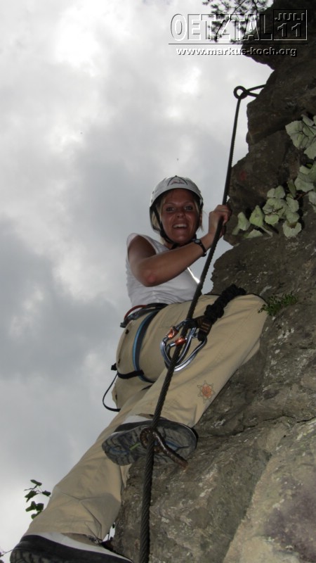 Nachmittags haben sich dann schon fast entkräftet Volker, Christian&Janet, Udo, Michael, Marie&Ich auf einen Klettersteig am Lehner Wasserfall getraut.War schon der Hammer so am Abgrund des Todes mit einem Sicherungsseil an einem Stahlseil im Felsen gesichert zu sein!