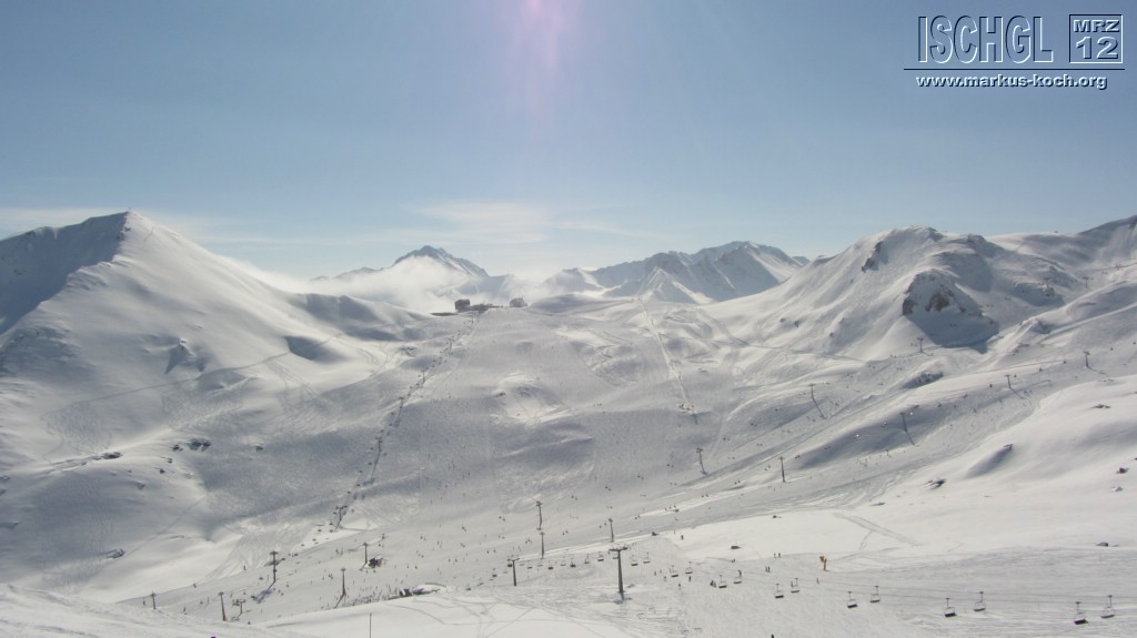 Schnee: SA, SO: morgens eher vereiste Pisten, mittags etwas sulzig. MO: Neuschnee bis 30 cm, schlechte Sicht. DI: Neuschnee in den Hängen, traumhaft weiche + griffige Pisten. MI: überall traumhaft griffig. Nachmittags jeweils viel zusammengeschobene Haufen. Talabfahrt immer möglich, jedoch durch zuviele Skifahrer leicht nervig.