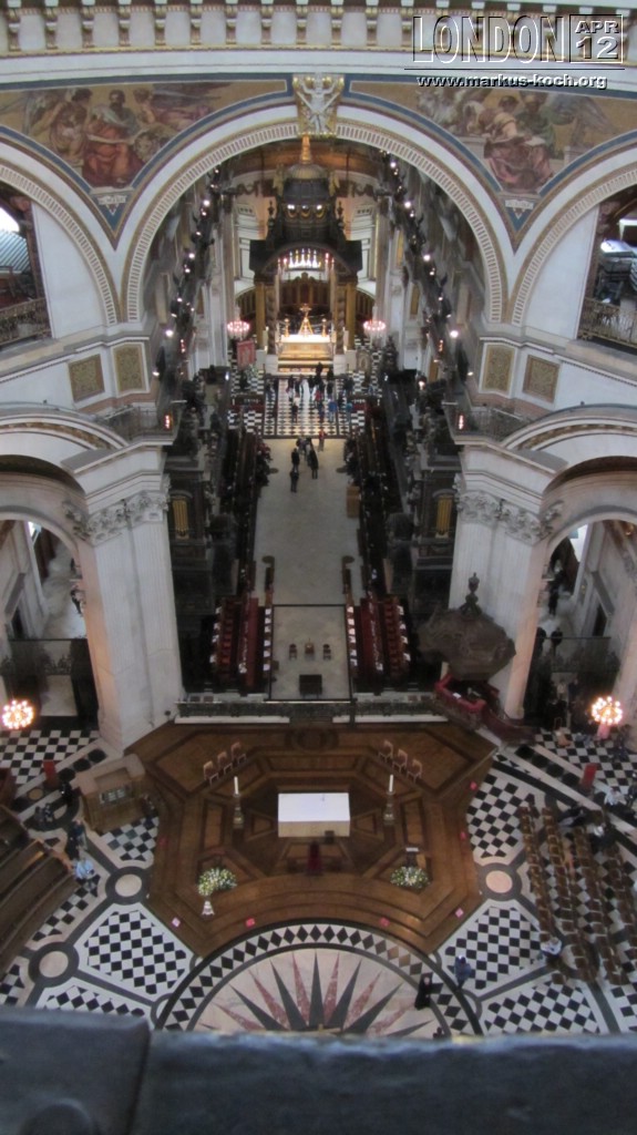 Unsere Tour bzw. (Foto)Stops: Buckingham Palace, Houses of Parliament mit Big Ben, Westminster Abbey, Downing Street 10, Aussicht zum London Eye von der Westminster Bridge am Big Ben, am Hyde Park und Madame Tussauds vorbei über den Piccadilly Circus und Trafalgar Square zur St. Paul’s Cathedral. Dort sind wir auch rein zum besichtigen, u.a. um die wundervolle Aussicht von der Kuppel ganz oben über London zu genießen.