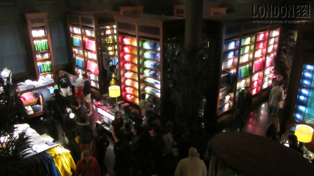 Über das 9 3/4 Gleis von Harry Potter am St. Pancras Bahnhof schauten wir uns den Markt von Covent Garden an, sind weiter über Chinatown zum Piccadilly Circus gelaufen. Hätten wir noch viel Zeit gehabt, hätten wir von da an die Regent Street bis zur Oxford Street als Shoppingparadies wahr genommen. So waren wir nur kurz im Abercrombie & Fitch.