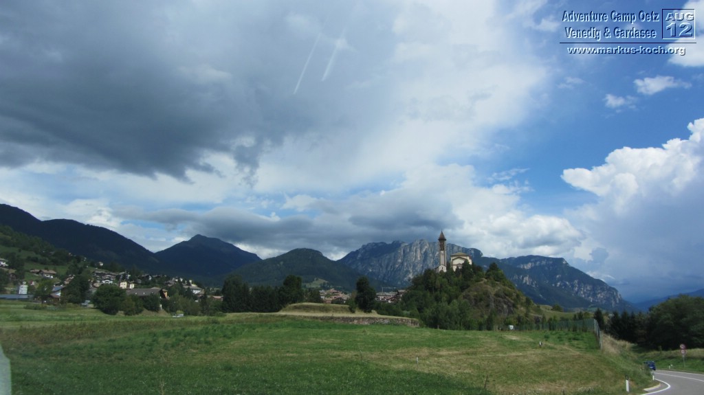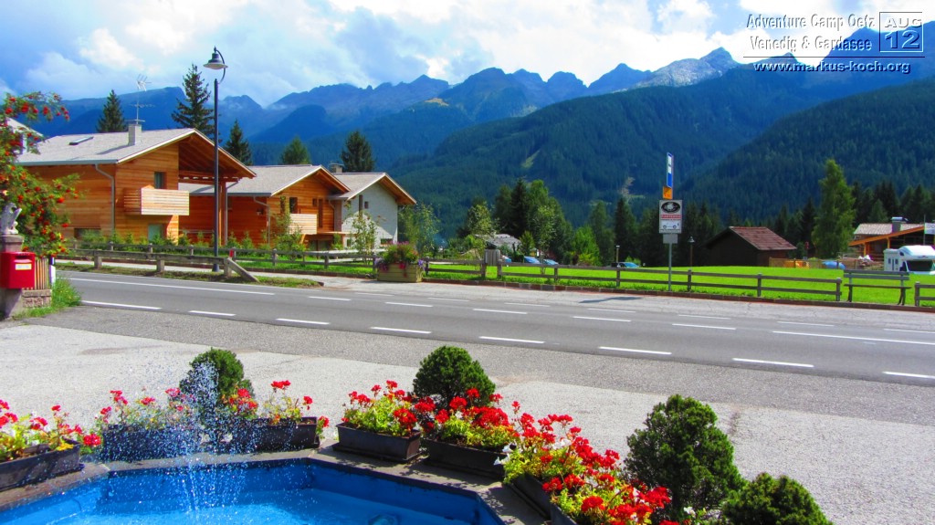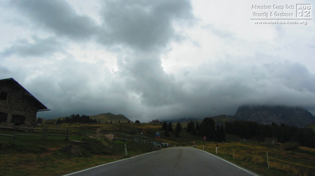 Weiter ging es nach dem Frühstück Richtung Venedig. Durch die Sperrungen des Timmelsjochs und der Brenner-Landstraße wählten wir notgedrungen die Brennerautbahn. Da bei Neumarkt ein richtig langer Stau vorhergesagt wurde, sind wir einfach – wir hatten ohnehin viel Zeit – quer durch die Dolomiten gefahren. Was eine Tour mit Passstraßen und Serpentinen – irre, aber auch schön, wenn es nicht so viel geregnet hätte 😉
