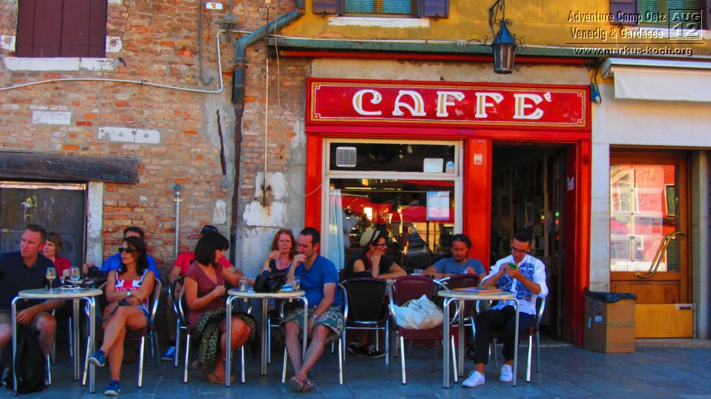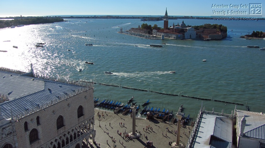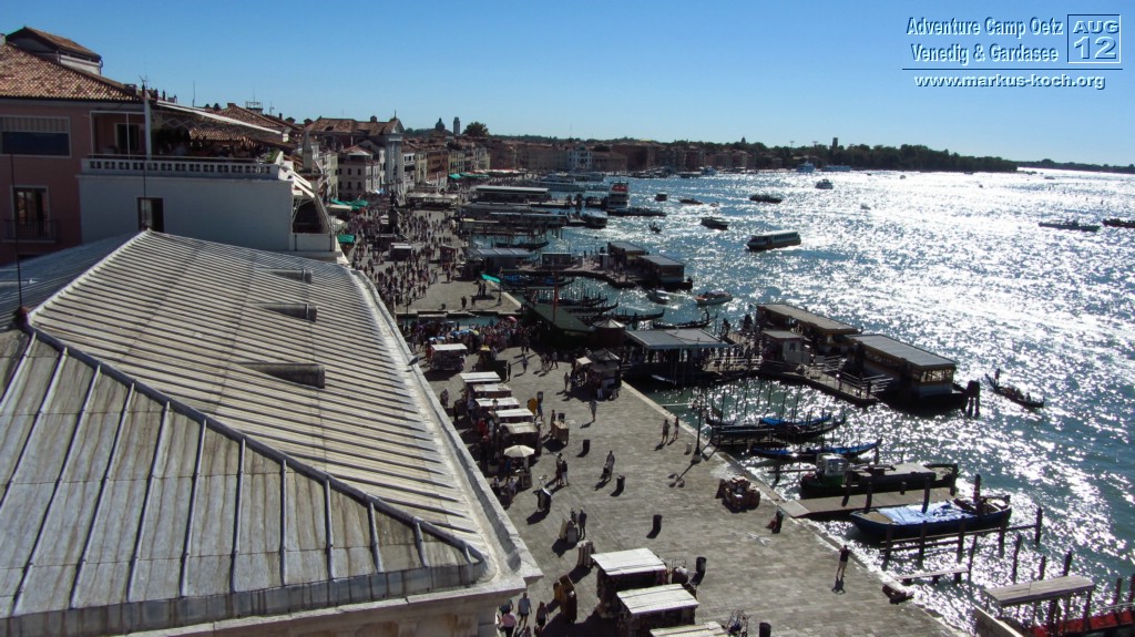Rialto-Brücke >> Markus-Platz >> Markus-Turm (Besichtiung – toller Blick über Venedig + Alpen) >> Dogenpalast (Besichtigung) inkl. Seufzerbrücke >> Griechenviertel >> Santi Giovanni e Paolo >> Einkaufsmeile Strada Nova >> mit Vaporetto auf dem Canale Grande vorbei an C‘ d’Oro, Collezione Peggy Guggenheim, uvm. zu Santa Maria della Salute >> Basilica di S. Maria della Salute >> Santa Maria Gloriosa dei Frari / Campo San Rocco >> Gemütlich Aperol Spritz am Campo Santa Margherita an einem Cafe getrunken, dann nebenan bei Pizza „al Volo“ eine zum mitnehmen bestellt und am benachbarten Campo San Barnaba gegessen – hinsetzen und genießen!