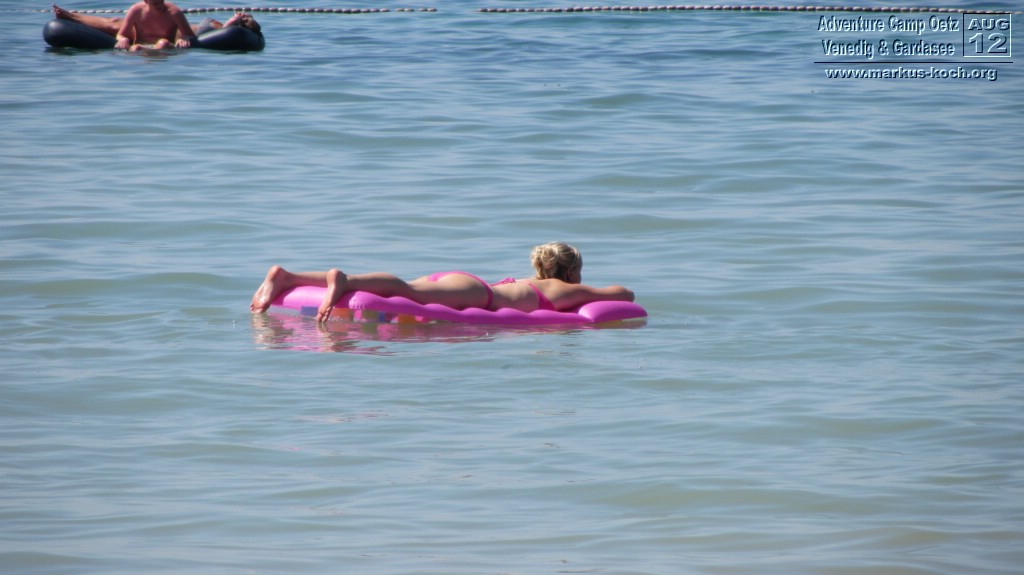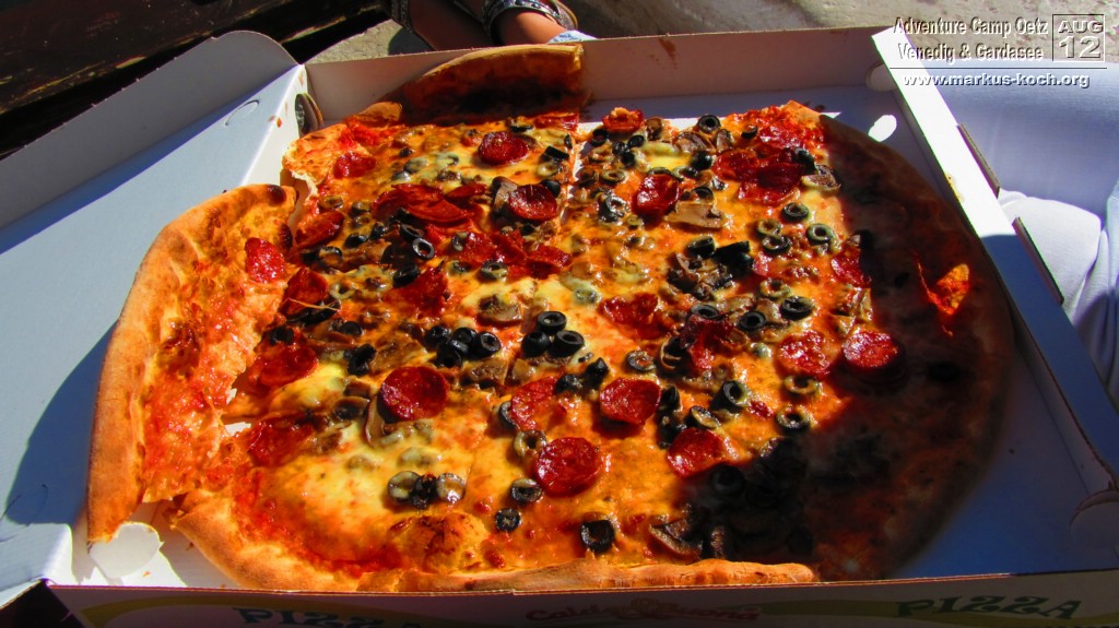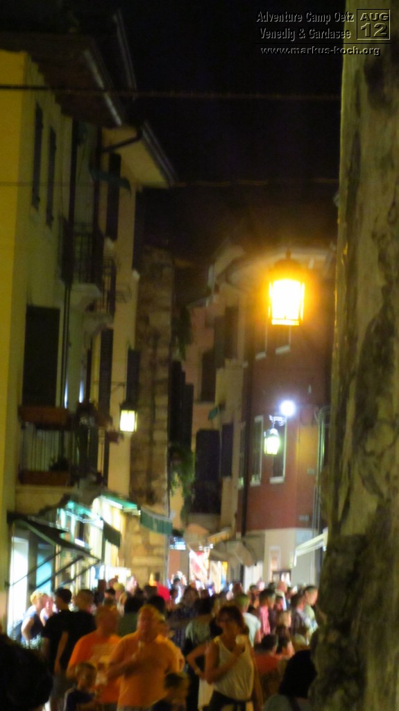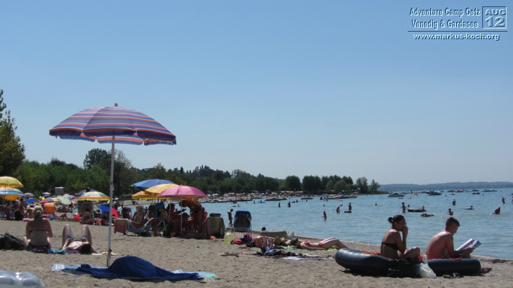 Am ersten Tag in Lazise haben wir die uns kostenlos zur Verfügung gestellten Fahrräder geliehen und sind an einen Strand im Süden von Lazise gefahren – direkt unterhalb eines Campingplatzes. War ganz schön heiß dort, da keine Bäume als Schattenspender vorhanden waren, aber es war Sonne Sonne Sonne da und der Gardasee nur 5 Meter von uns zum abkühlen entfernt 🙂 Nachdem wir am späten Nachmittag zurück an der Unterkunft waren, hüpften wir noch in den eigenen Pool. Abendessen innerhalb der schönen Burgmauern von Lazise. Aber: Touris Touris Touris!!!! Hilfe – wie Ameisen in diesen 10 Gassen – grad zur Ferienzeit würden wir das bei einem nächsten Besuch sicher ausklammern. Genial war dann noch eine coole Cocktailbar „Cortes“ – absolut empfehlenswert!