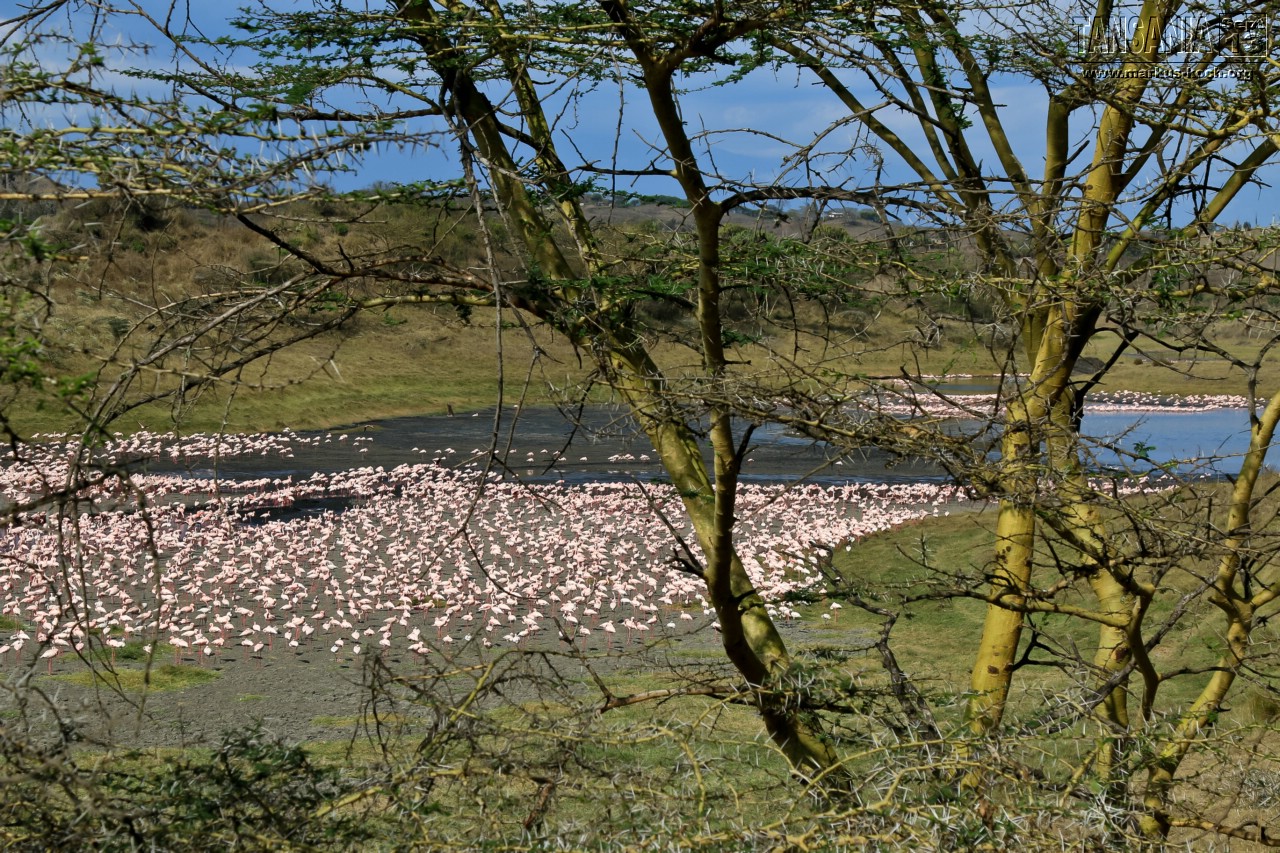 Giraffen, Zebras, Warzenschweine, Büffel, mehrere Affenarten, Flamingos, eine Art Reh und ein paar mehr, dessen Namen wir nicht wissen.