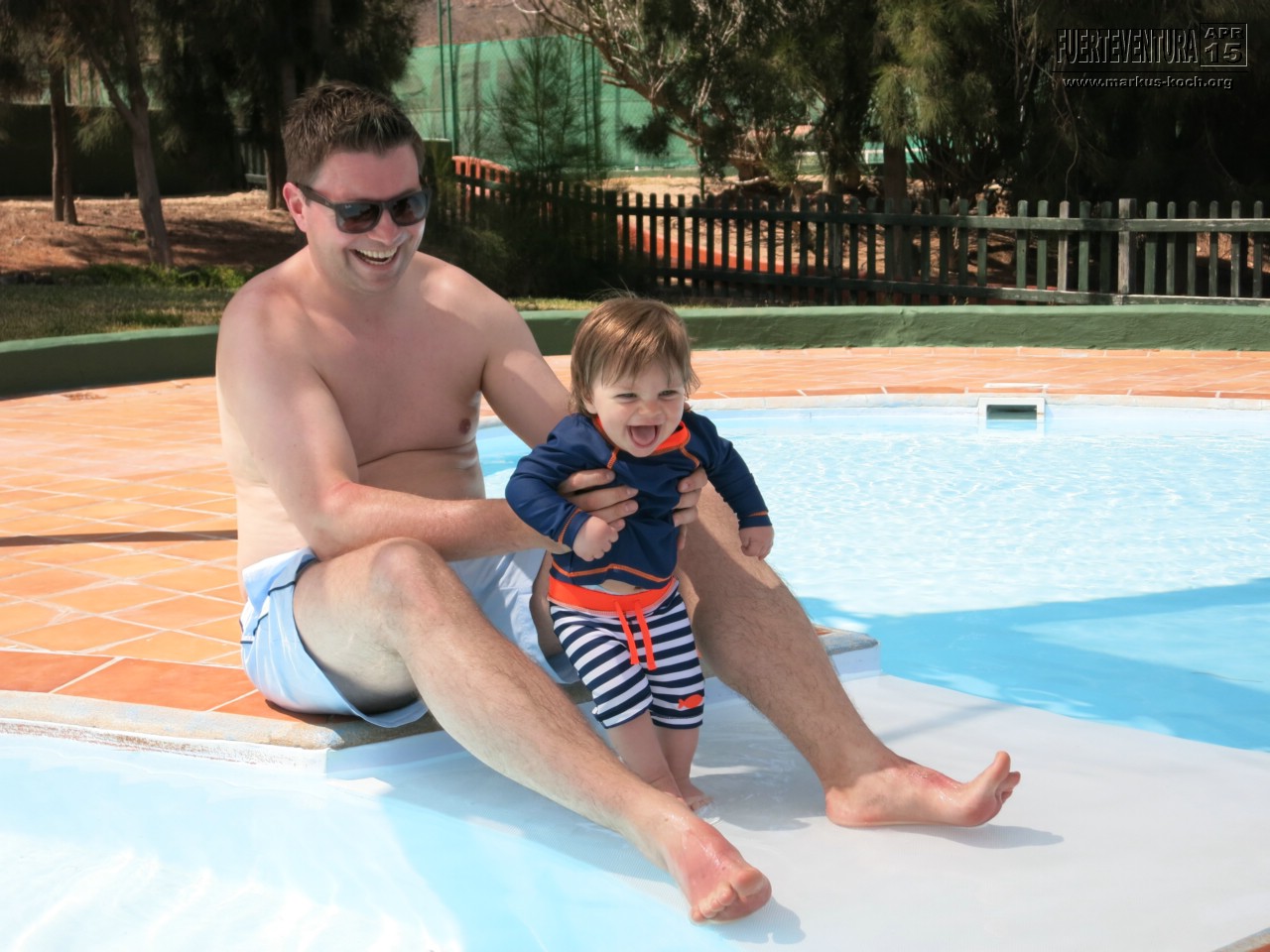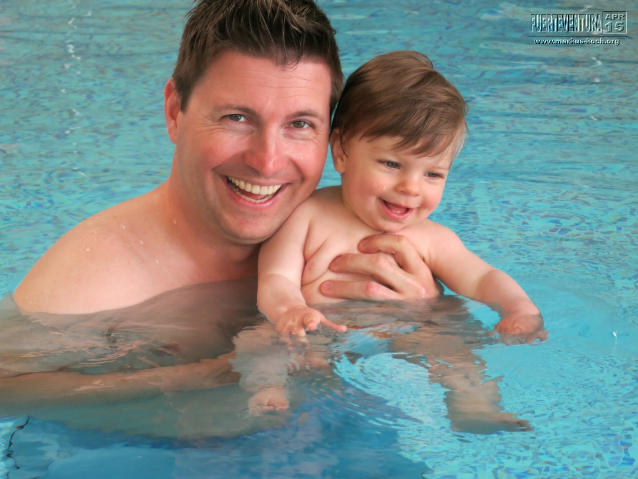 Im beheizten Pool des Wellness Centers konnten wir mit Luca ins 26-28°C beheizte Wasser zum Planschen. Es ist zwar über 1 m tief, aber wir haben ihn immer schön gehalten.