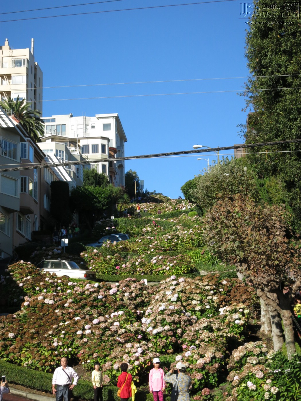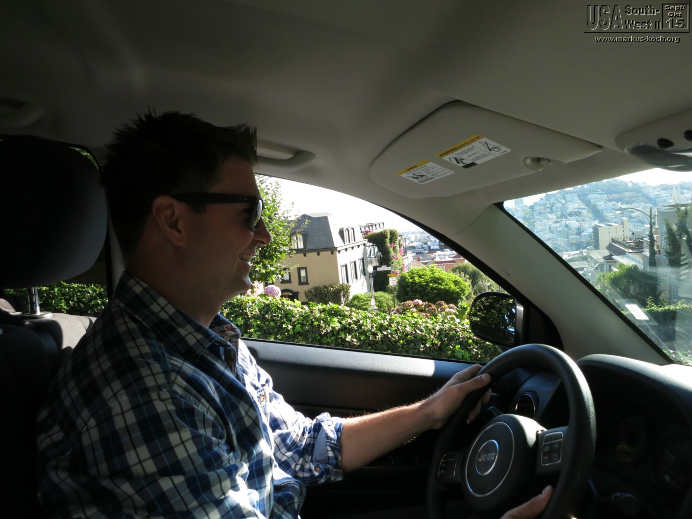 Da Sonntag war und wir gestern schon über ne Stunde gewartet hätten, um die Lombard Street hinab zu cruisen, haben wir uns heute den Wecker gestellt. Das hat auch gut geklappt, da wir alleine um 9 Uhr fahren konnten. Nicht nur das, sondern sogar einfach einmal um den Block und noch einmal 🙂