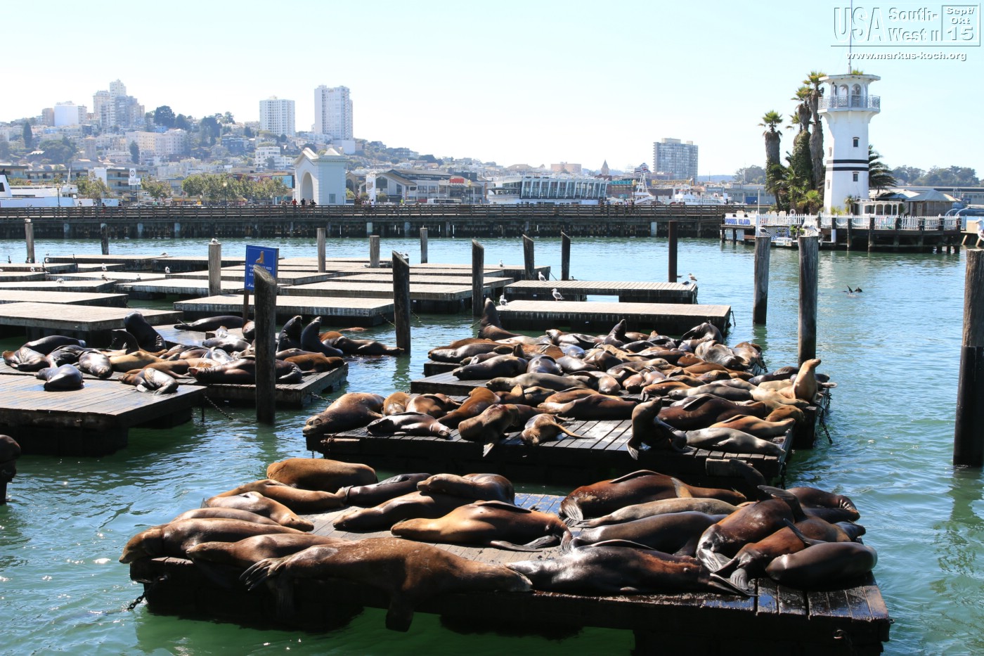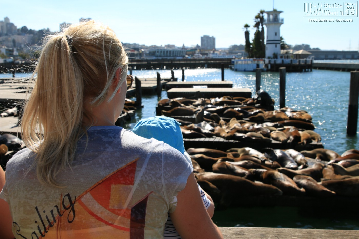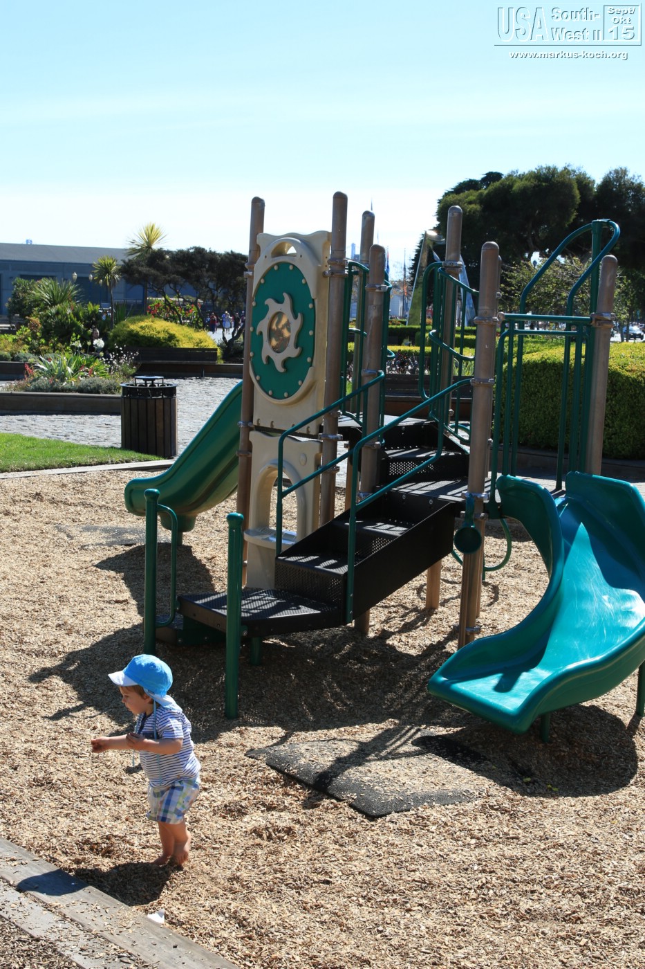 Anschließend brachten Luca & ich die Mädls an den Fährableger für eine Alcatraz-Tour. Während die beiden mitbekamen, wo Al Capone sich in der Zelle befand, machten Luca & ich einen Spielplatz unsicher, danach Mittagsschlaf und schonmal die Seelöwen an Pier 39 bestaunen, bis die Damen wieder zurück waren.
