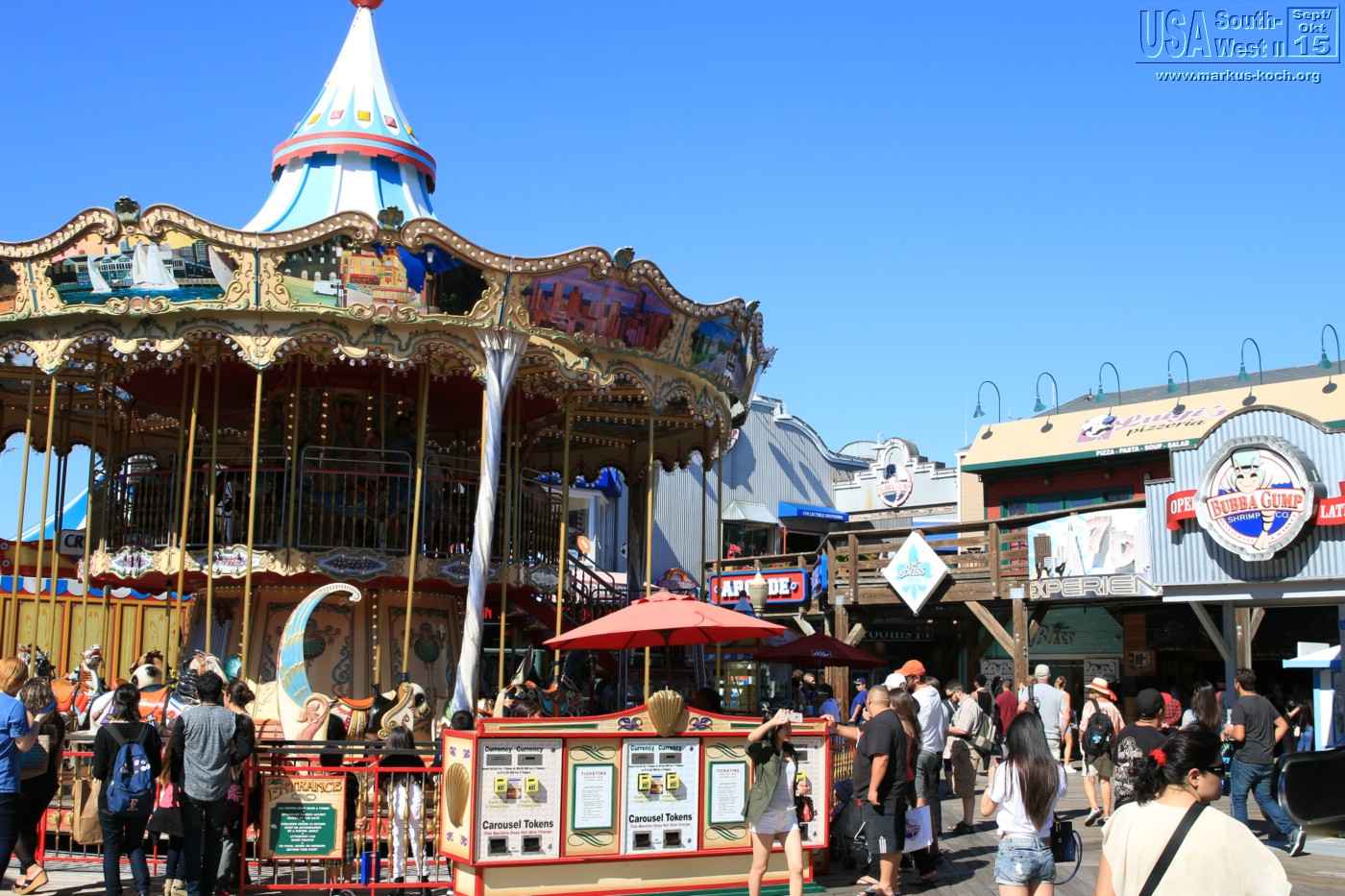 Nach dem Snack im Hard Rock Cafe liefen wir Pier 39 ab. Luca drehte eine Runde auf einem Karussell. Danach nochmal zu den Seelöwen und weiter zu Fisherman’s Warft und zur Cable Car Station. Leider hätten wir über eine Stunde warten müssen und wir beschlossen den Heimweg anzutreten.