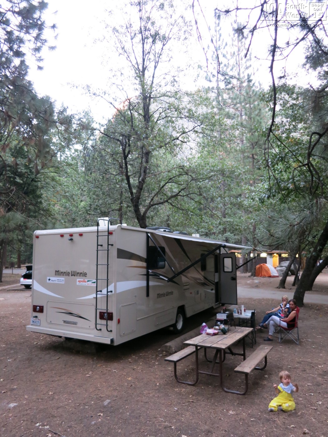 Die zweite Möglichkeit war einen CG wieder auf der Anhöhe außerhalb nehmen zu können, wo Platz wäre. Dafür haben wir uns nun letztendlich auch entschieden. So waren wir wieder 40 Minuten vom Yosemite Village entfernt, was aber nicht sooo schlimm ist, am Crane Flat CG.