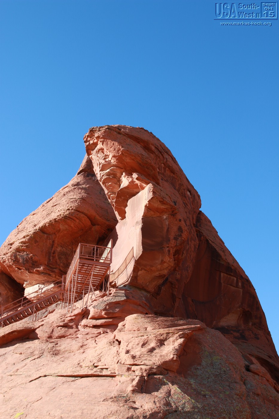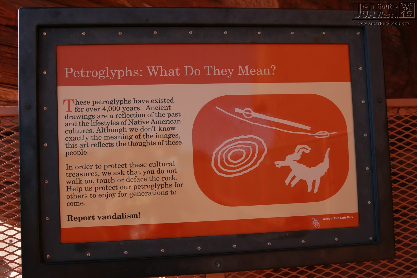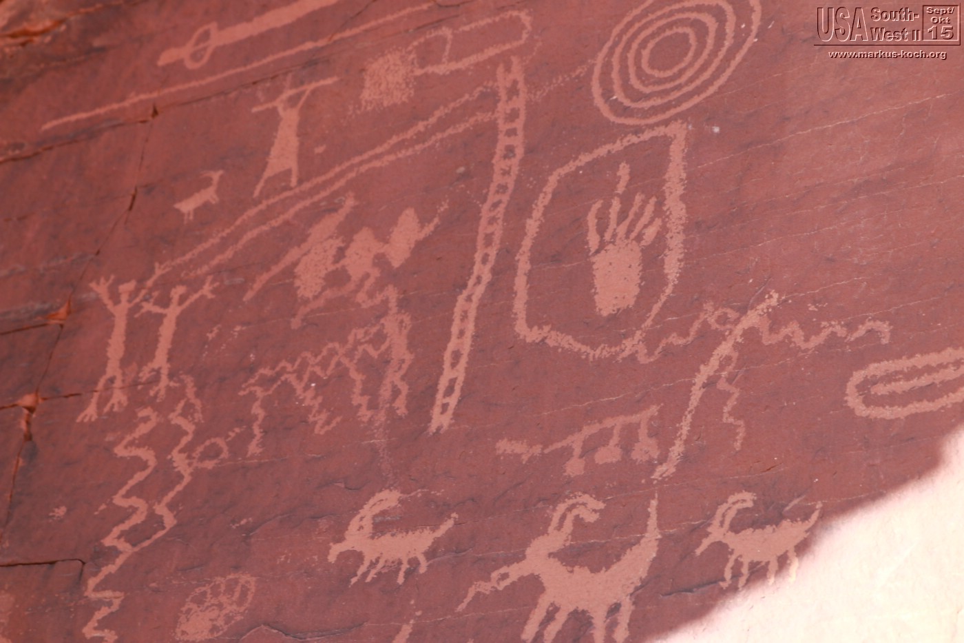 Atlatl Rock – hier sieht man 4000 Jahre alte Petroglyphen. Leider – aber immerhin – sind diese grad mal ein paar Quadratmeter groß.
