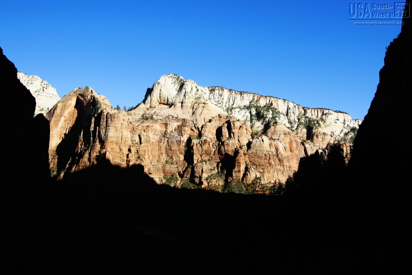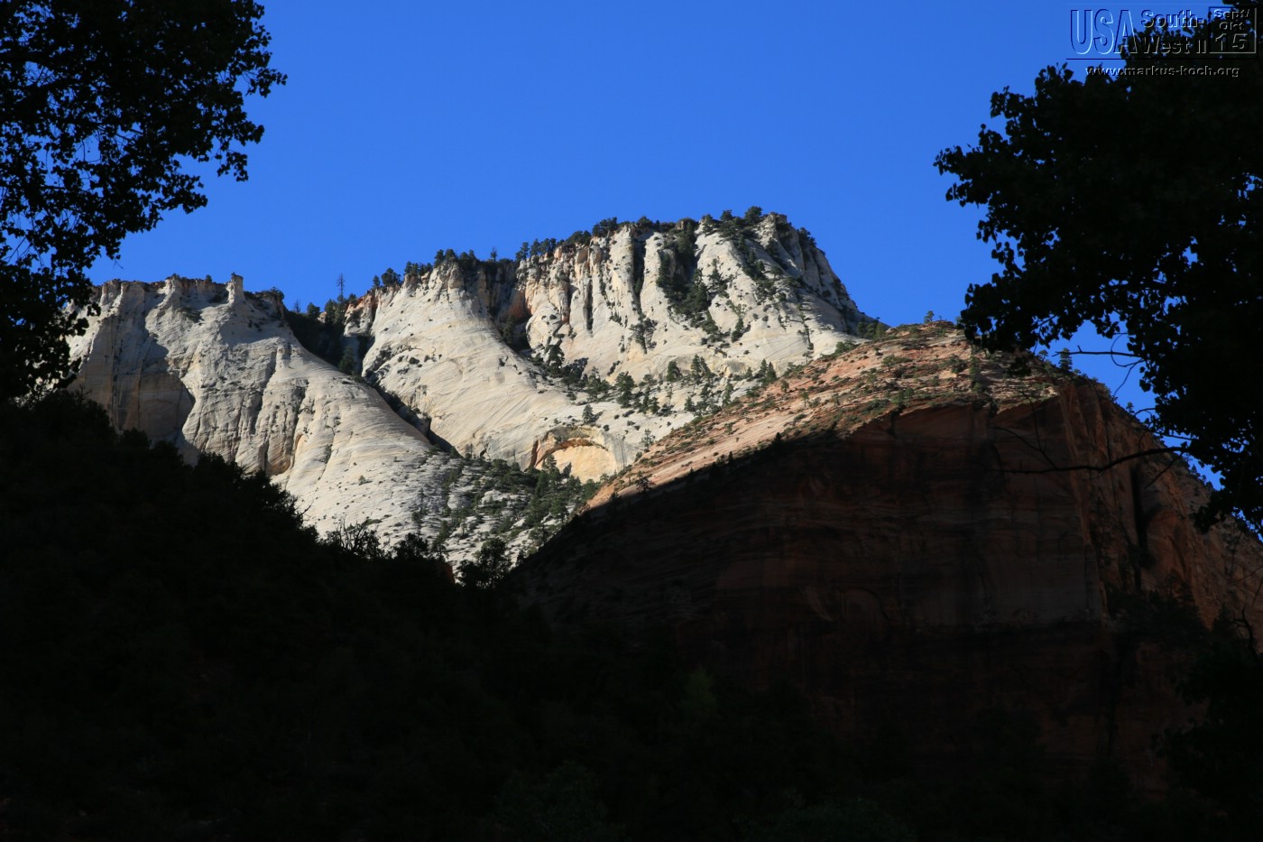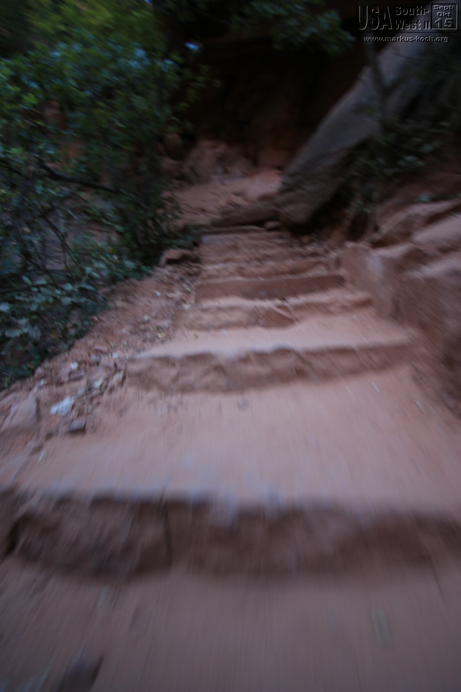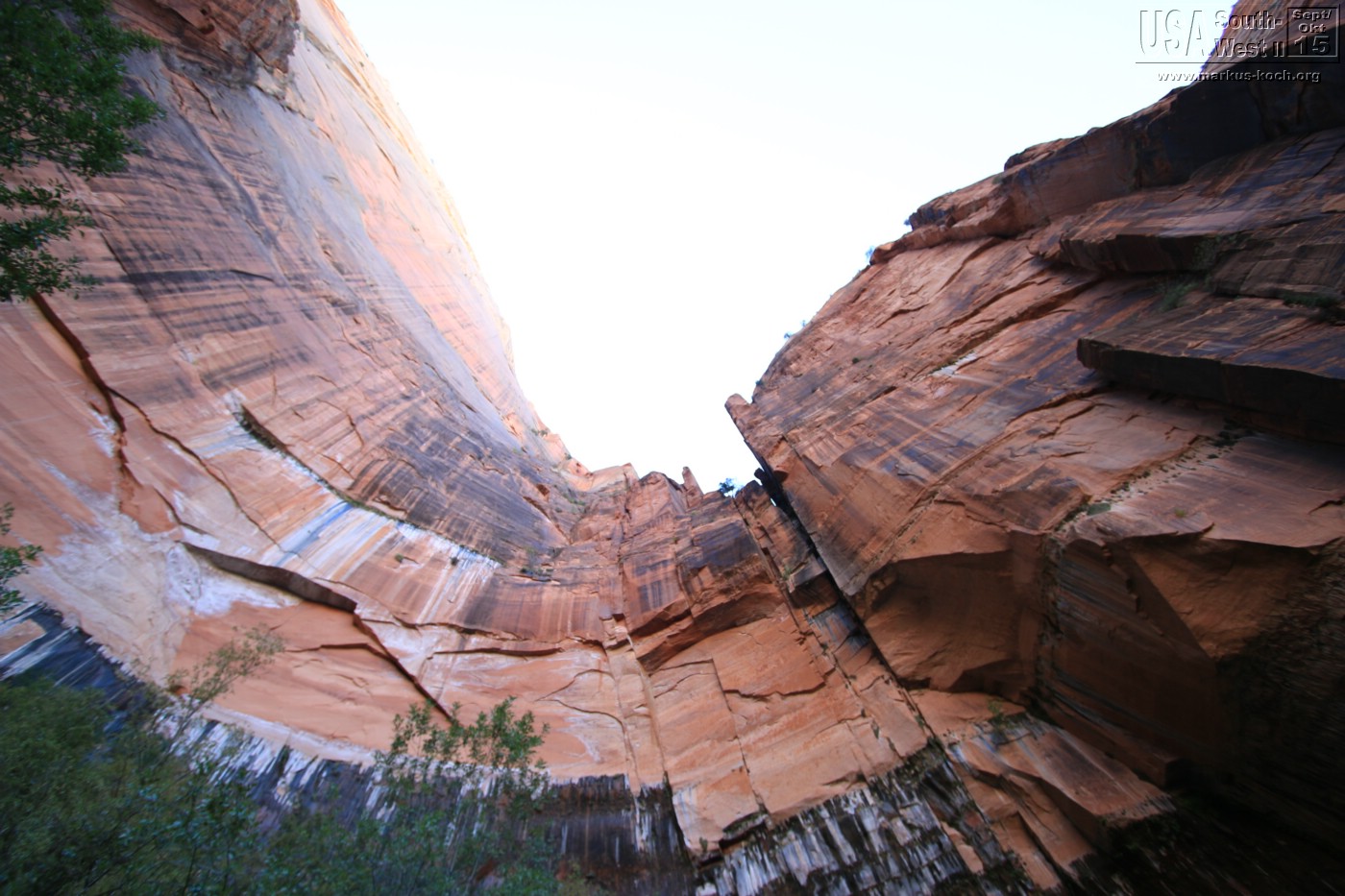 Weiter ging es über einen kurzen Halt in St. George (IN-OUT-BURGER, Walmart Babynahrung) in den ZION Nationalpark. Nach dem Anschließen des RVs an die Elektrizität + Wasserzufuhr machte ich mich nochmal kurz auf den Weg zu den Lower & Upper Emerald Pools. Auch hier war kaum Wasser vorhanden, sodass alles eher etwas lau aussah.