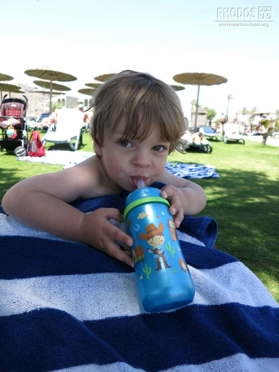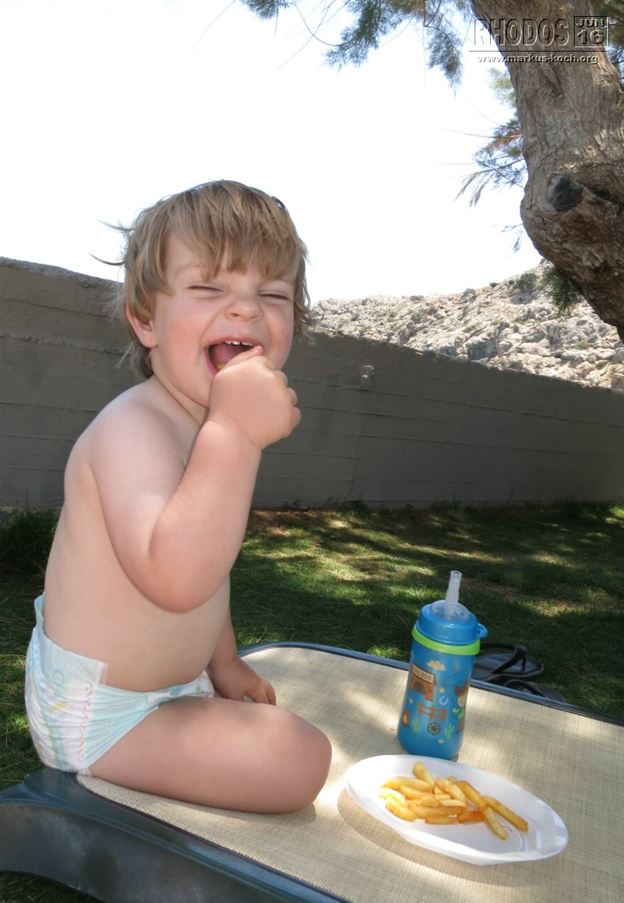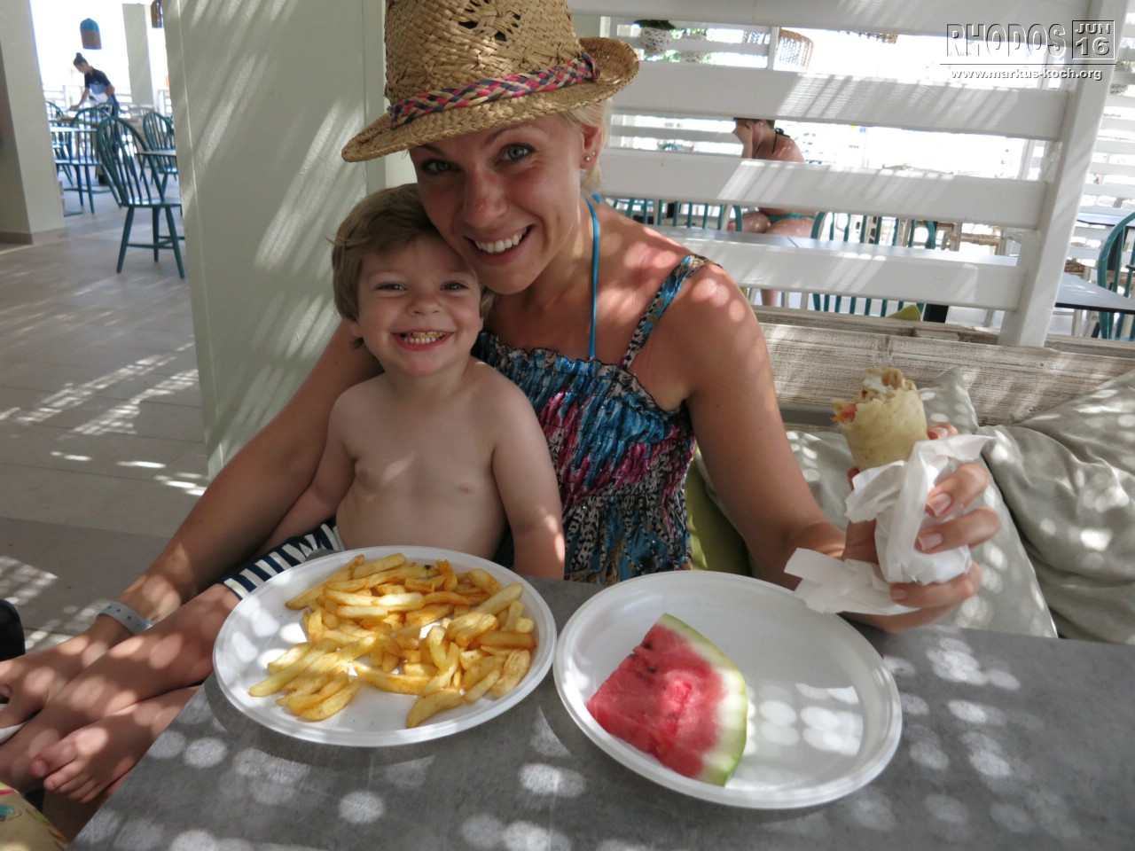 Lindos: Schönes kleines am Berghang gelegenes Städtchen mit in weiß gehaltenen Häuschen mit vielen engen und verwinkelten Gassen. Am Gipfel steht eine gut erhaltene Akropolis. Allerdings war es sehr heiß (37°C) und ein Aufstieg mit Kinderwagen nicht möglich. Aber war trotzdem schön anzusehen 😉