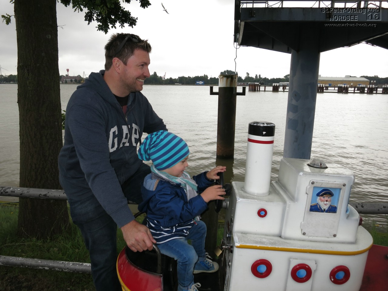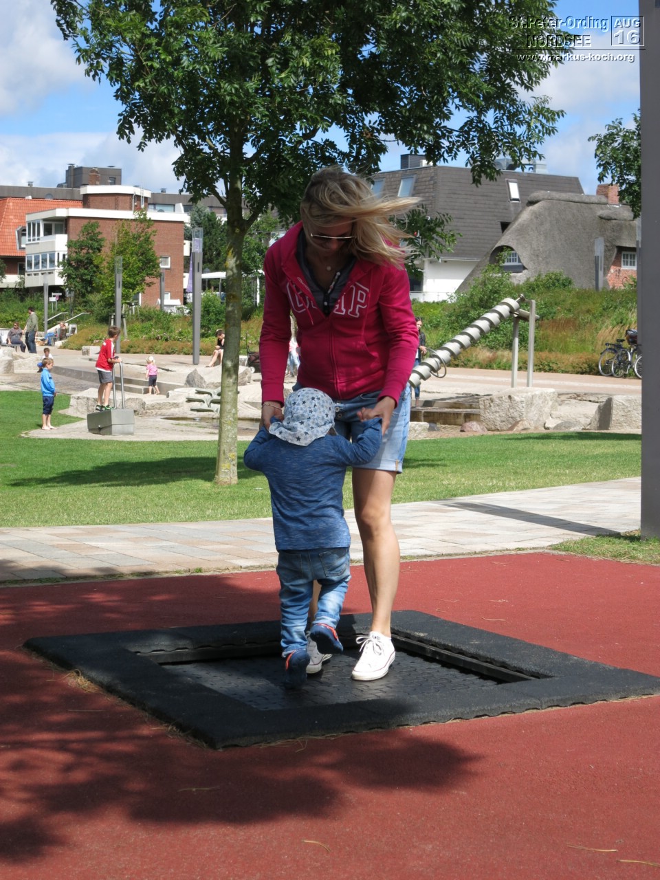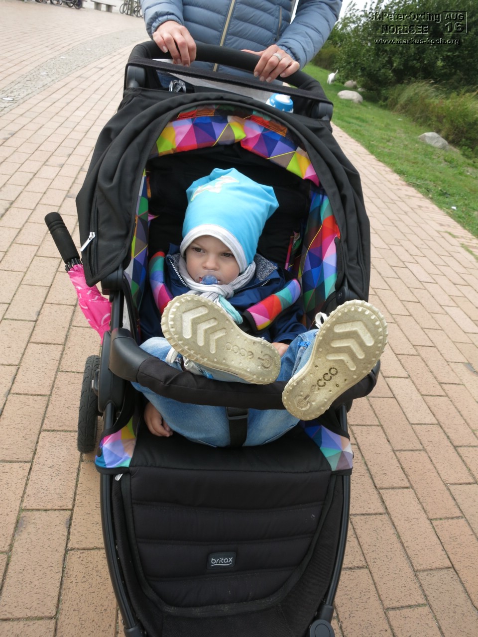 Da es vormittags noch frisch war, schauten wir uns in SPO-Bad zunächst die Strandpromenade an. Dort war ein Spielplatz, wo sich Luca prima austoben konnte.