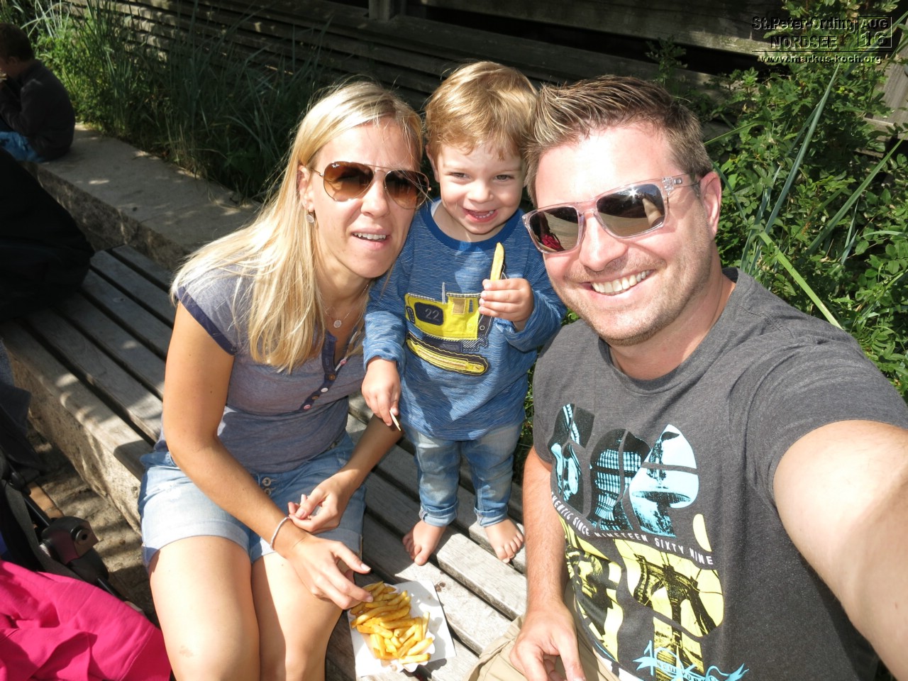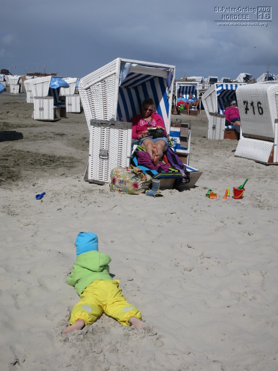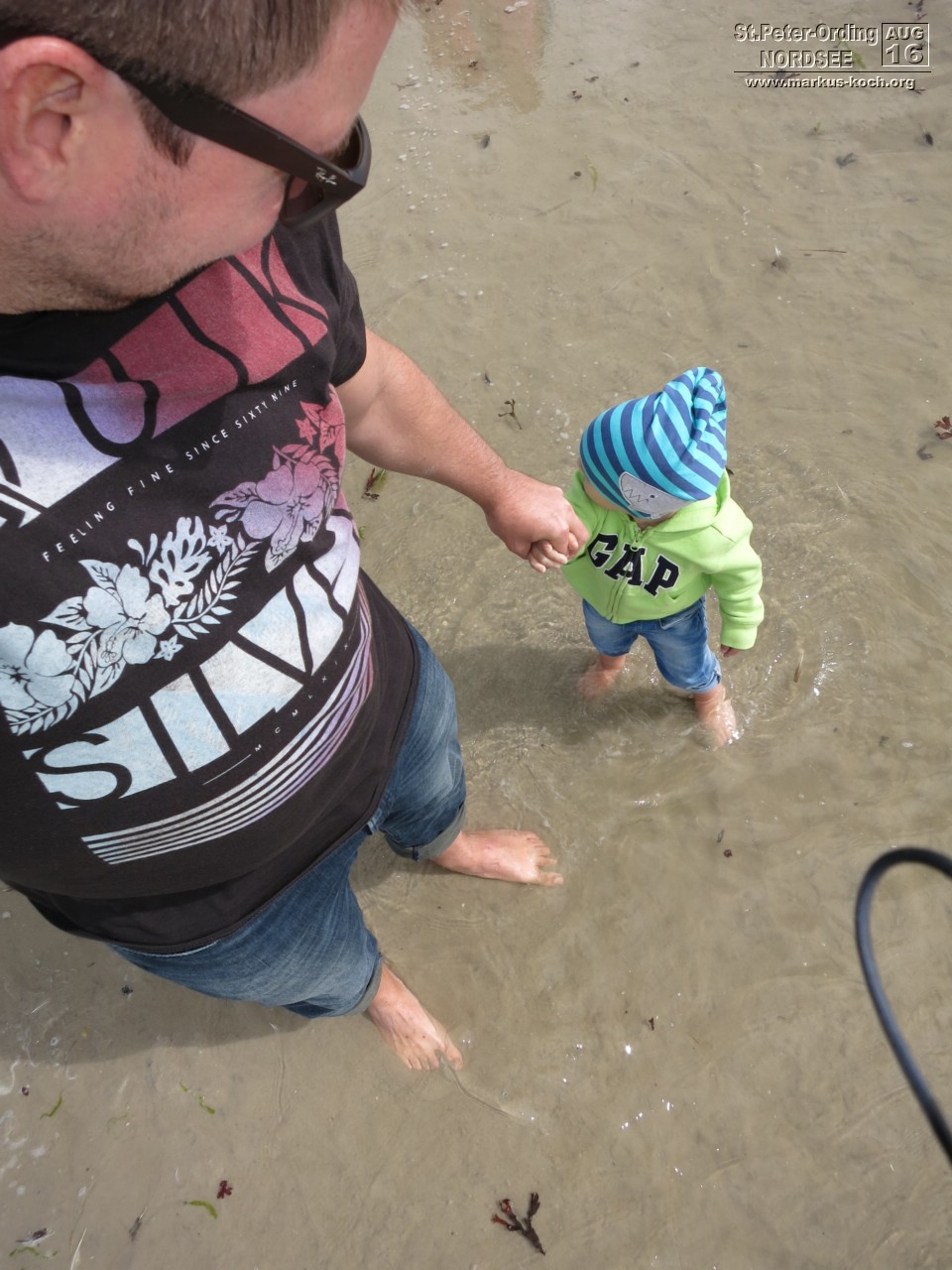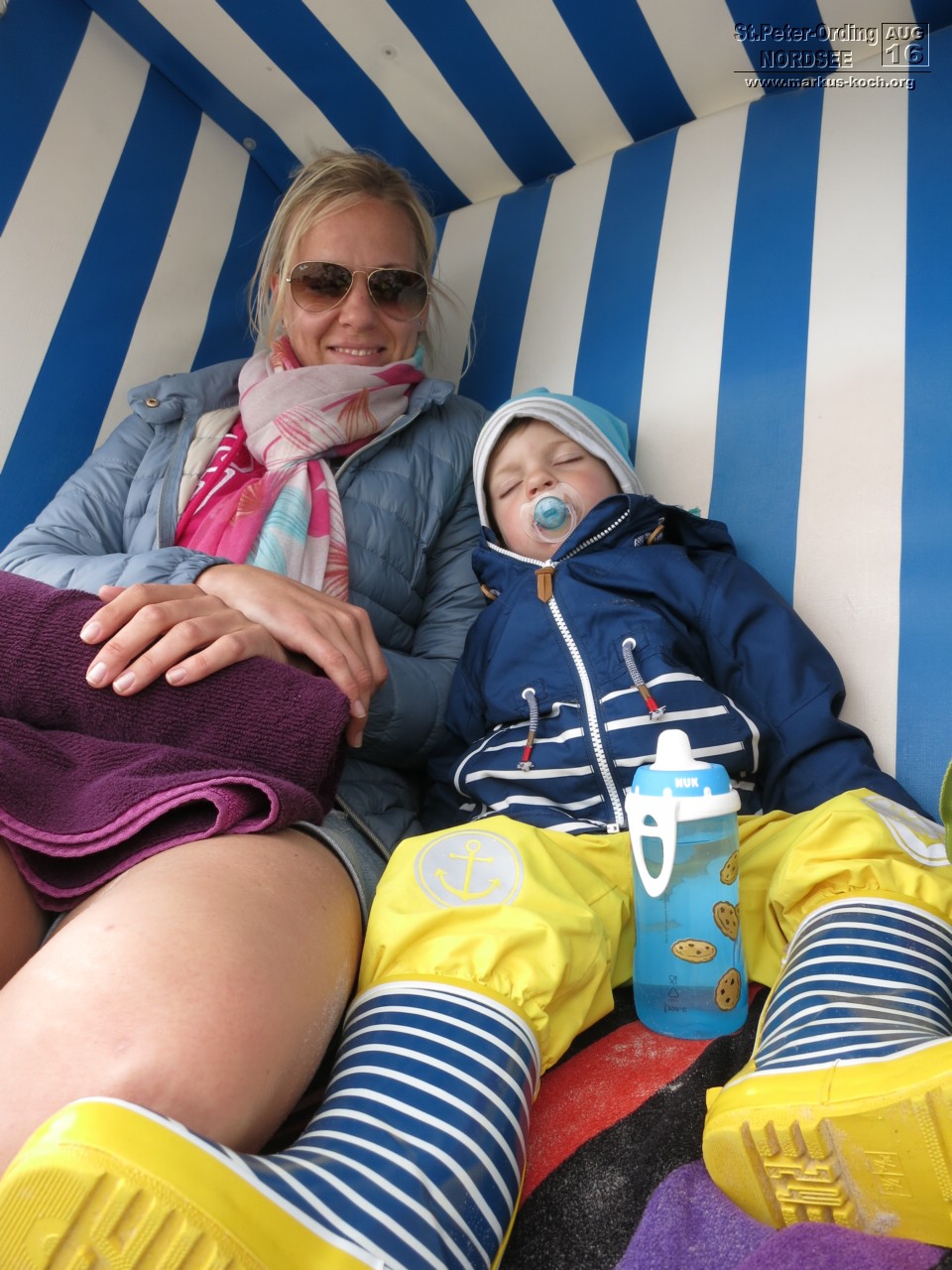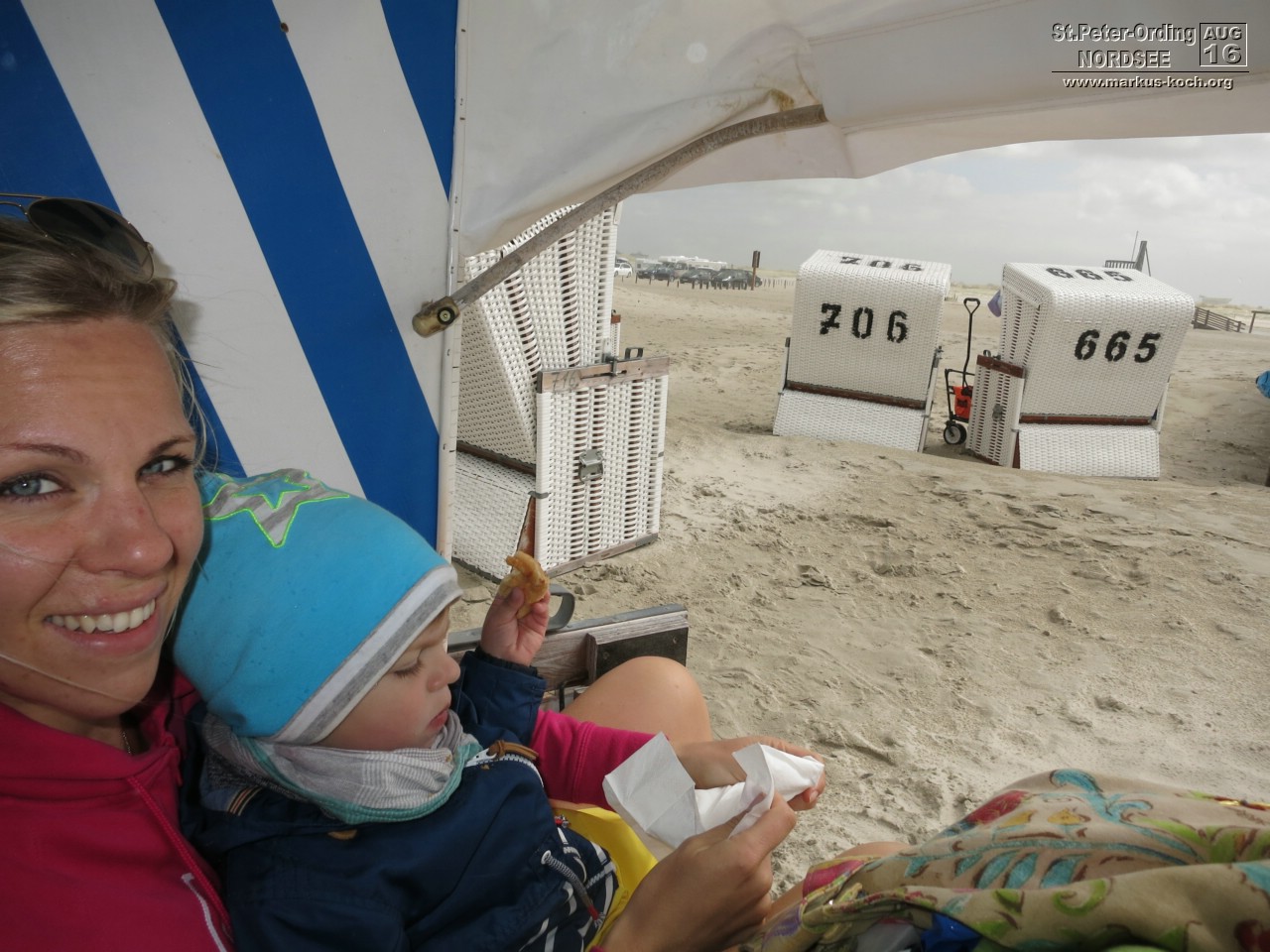 Unser Auto parkten wir direkt am Strand – das ist meines Wissens nur in SPO möglich. Ein paar Meter weiter suchten wir uns einen Strandkorb, welcher recht hoch stand und wo noch Sand für Luca zum Spielen vorhanden war. Kam ein kurzer Regenschauer verkrochen wir uns im Strandkorb. Luca gefiel auch ein Gang im Watt sehr gut. Er hatte – wie so oft – seinen Spaß 🙂