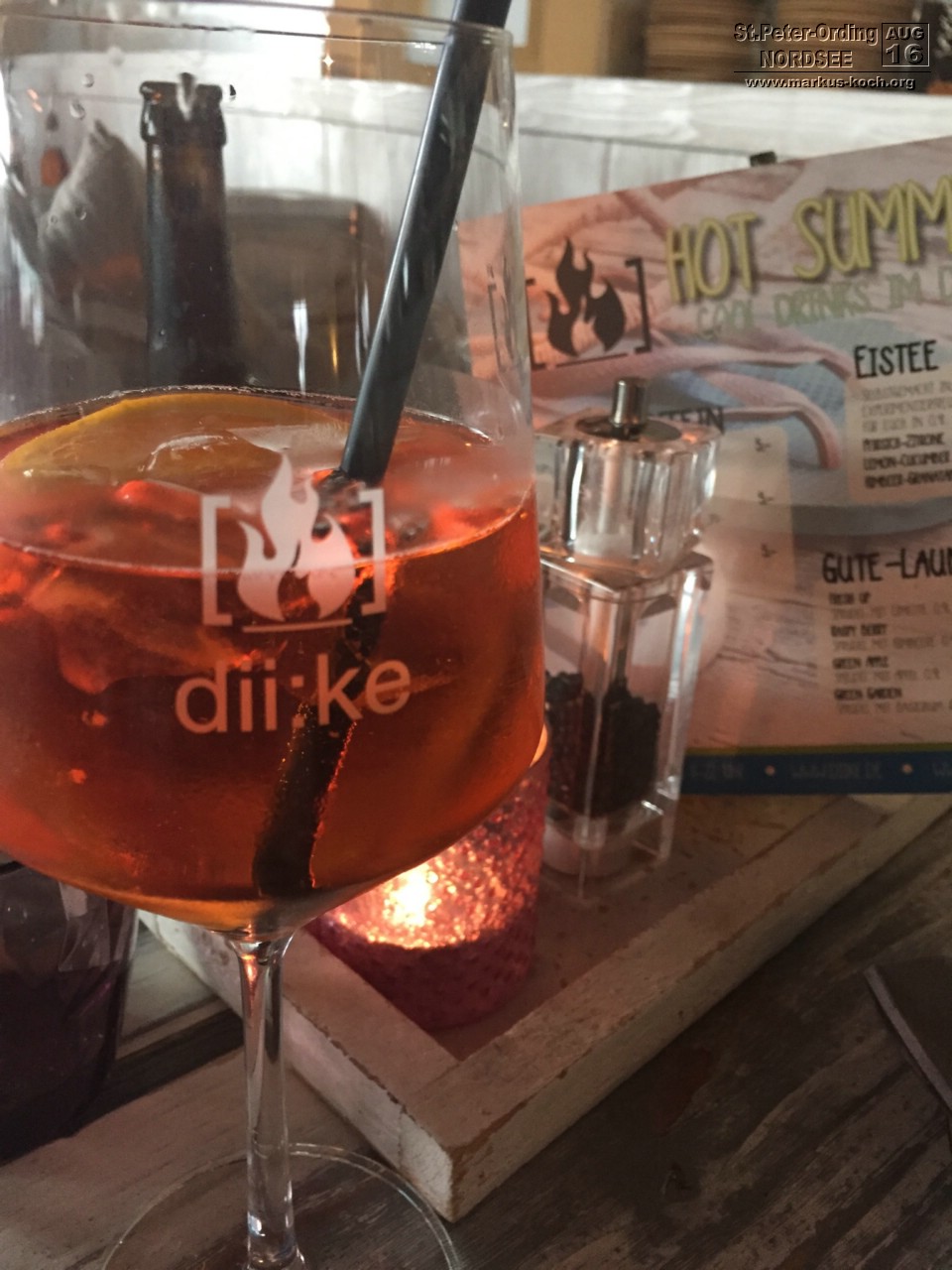 Abendessen gab es im Beach-Motel Restaurant: „dii:ke“. War lecker, aber etwas unkoordiniert da.