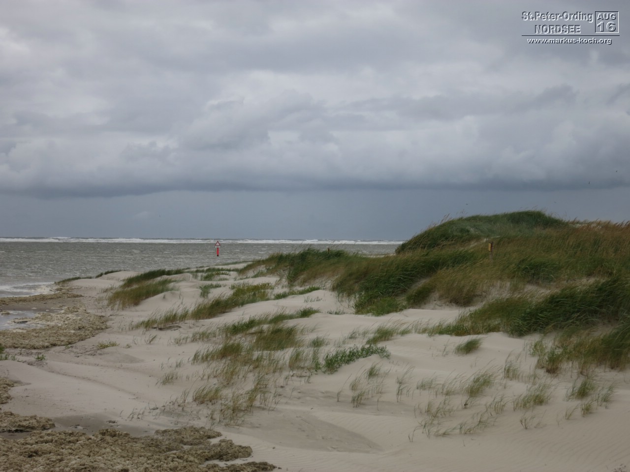 Nachmittags, als es besser schien, wollten wir zum Strand Bröhl, da dort wenig los ist und zum Pfahlhaus „Zur Silbermöwe“. Als wir am Strandparkplatz ankamen hieß es, wir müssen in 2 h das Auto spätestens weg haben, da dank Windstärke 8 die Flut schneller & höher als normal ankommt und den Parkplatz überfluten wird.