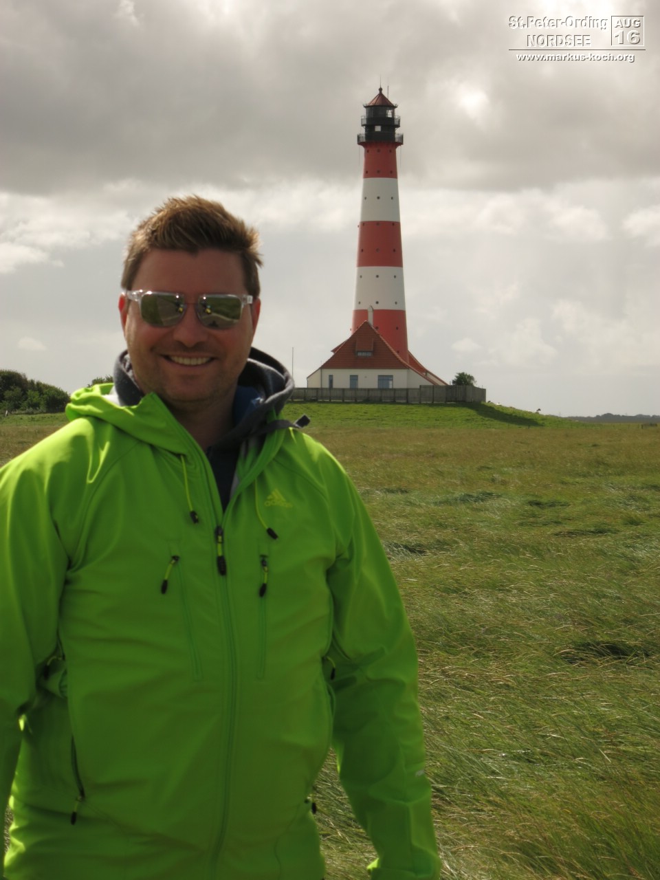 Das Wetter war nicht gut gemeldet, weswegen wir uns schon in die lange Reihe an der Dünen-Therme anstellten. Nach ein paar Überlegungen beschlossen wir jedoch das Risiko einzugehen um lieber am Mi den bekannten Leuchtturm von Westerhever zu besuchen. Nach 2 km und Glück mit dem Wetter erreichten wir diesen auch zu Fuß.