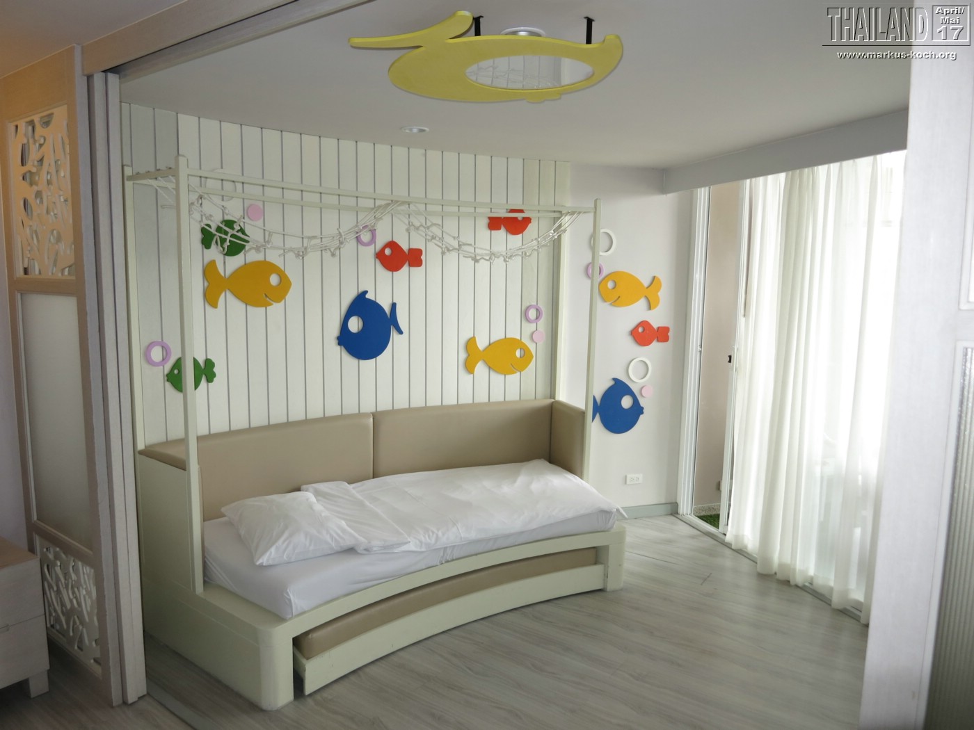 Der Hotel Check-In war auch rucki zucki erledigt und unser Familienzimmer ist auch super groß, hell & sauber. Für Luca gibt es ein mit Schiebetür abgetrennten Schlafbereich.