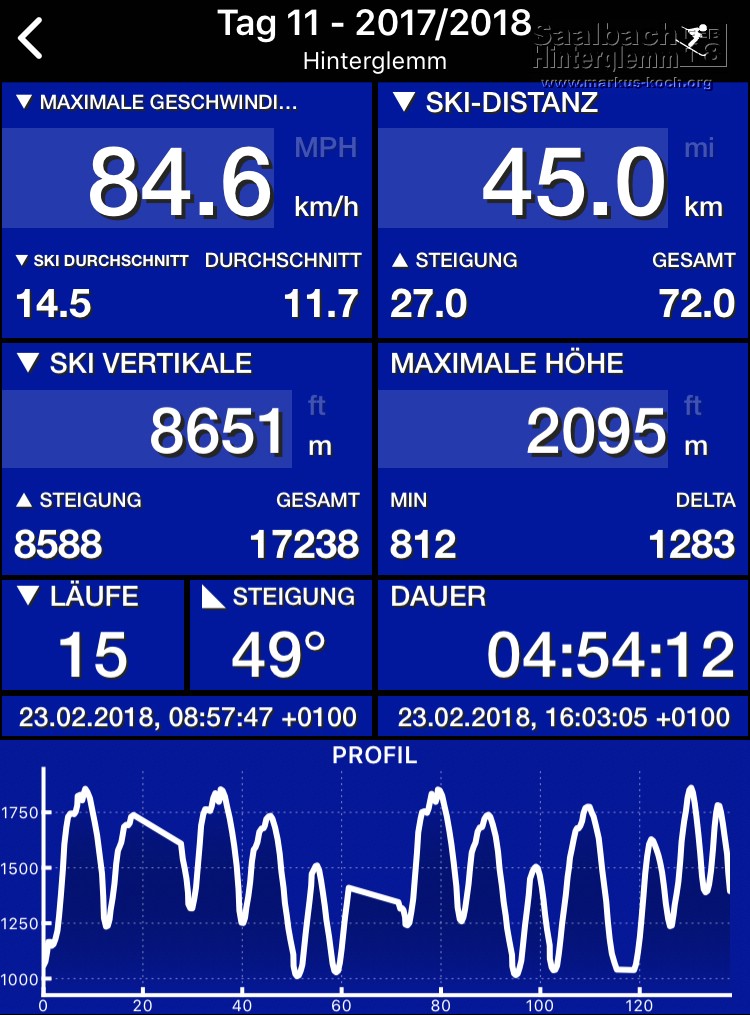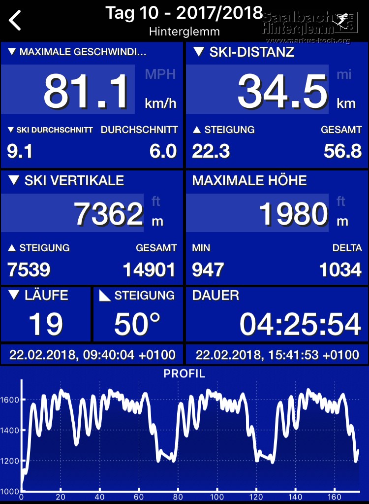 Mo, 19.02.  – Skiing – Wetter: Sonne, -4 bis +4°C