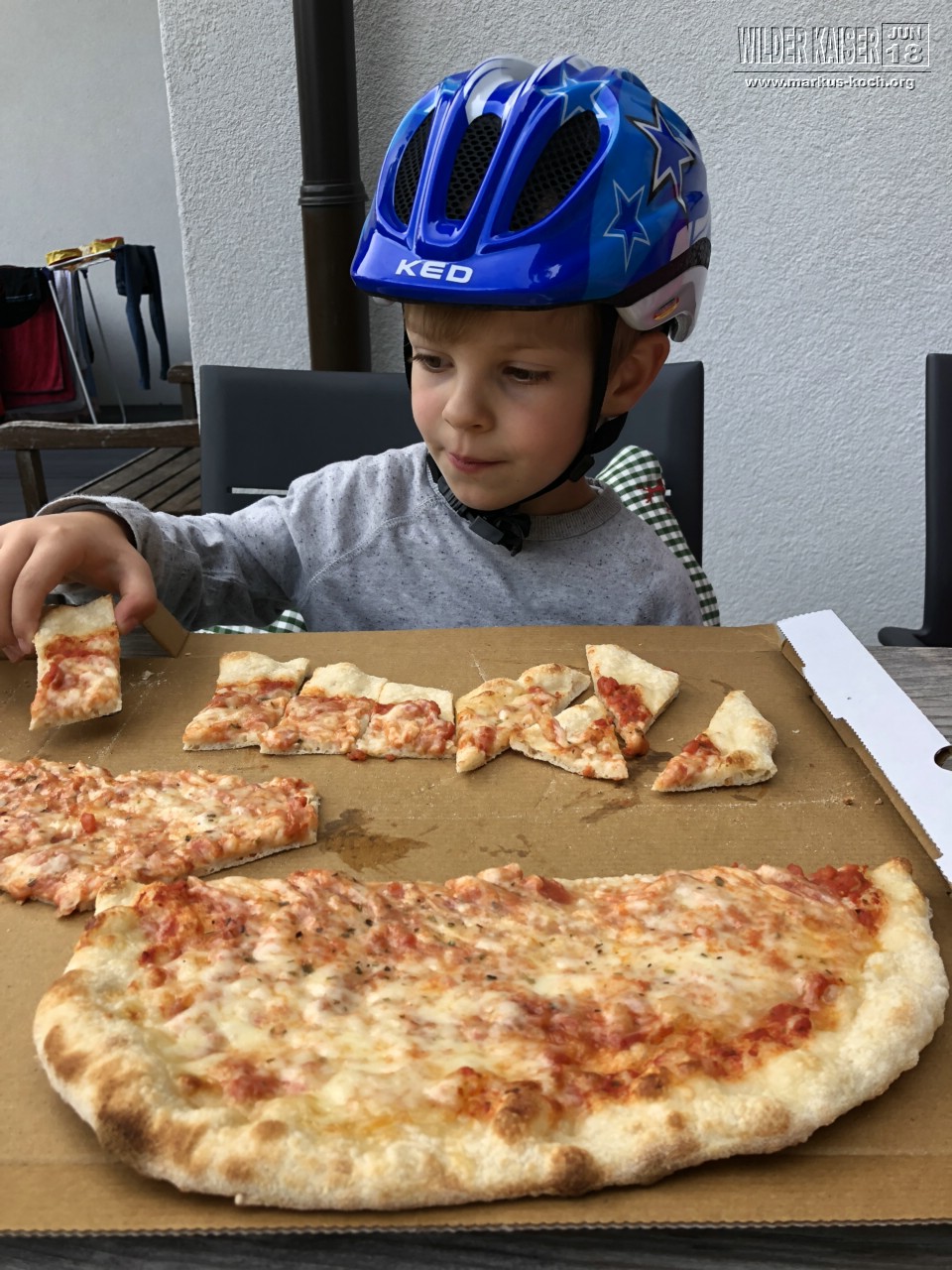 Pizza gab es als Abendessen, die wir im Restaurant „Auf da Mühle“ abgeholt hatten.