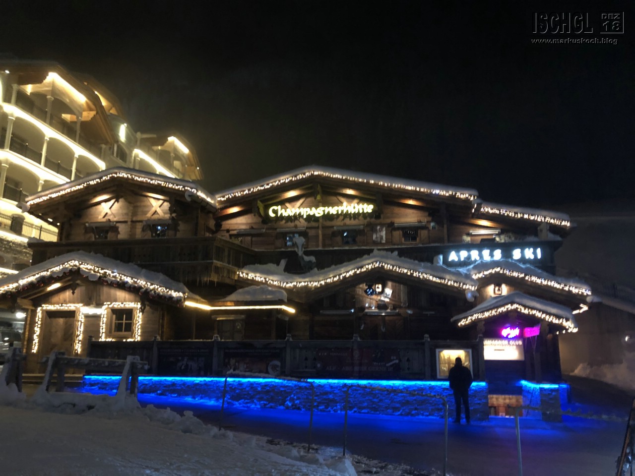 Bis die Jungs (Christian, Fränk & Felix) ankamen schaute ich mich kurz etwas in Ischgl um, Kuhstall, dann etwas Essen im Fire&Ice (sehr lecker!), Trofana Alm (da steppte der Bär) & Champagnerhütte.