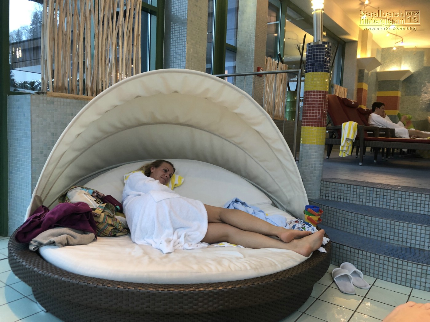 Nach etwas Recherche konnten wir in den SPA Bereich des Hotels Adler für 15 € pP (was irgendwie etwas viel für ein Kind war). Bekommen haben wir Bademäntel und Schlappen. Aber leider war dort irgendwie keine Umkleide für Tagesgäste, obwohl wir ja reindurften. Kapiere wer mag. Auch ein Haartrockner für danach war nicht da. Den haben wir dann aber trotzdem irgendwie organisiert bekommen. Aber insgesamt war es ganz schön dort.