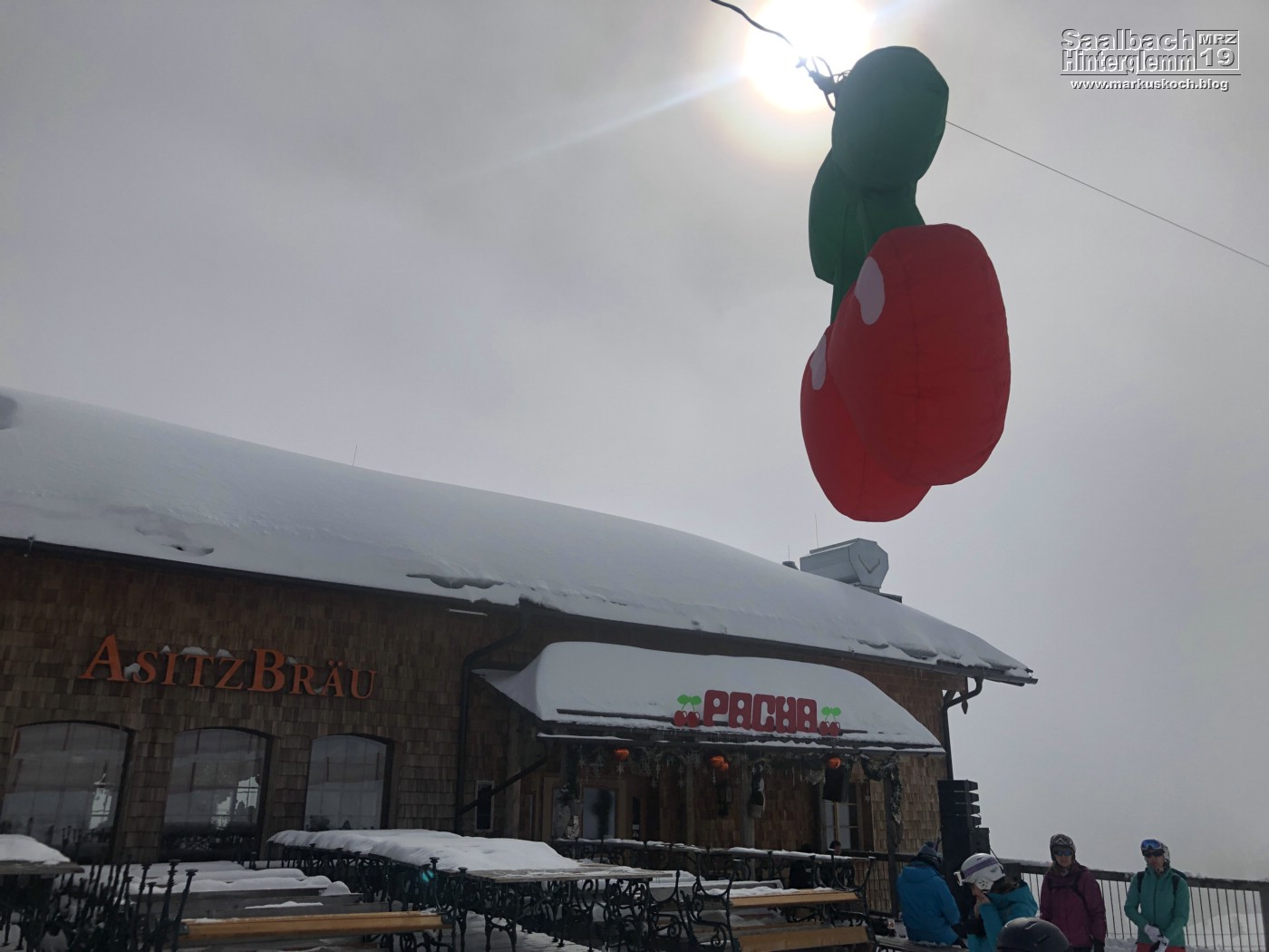 Wir trafen uns dann alle auf der Wieser-Alm zum Mittag (weltbester Kaiserschmarren). Danach ging es mit den Ski weiter zu Luis-Alm. Dort waren DJs & Co von den White Pearl Mountain Days. Zufällig trafen wir dort Christian Leimeister & Oliver Leister, die spontan an dem Wochenende auch in Zell am See waren.