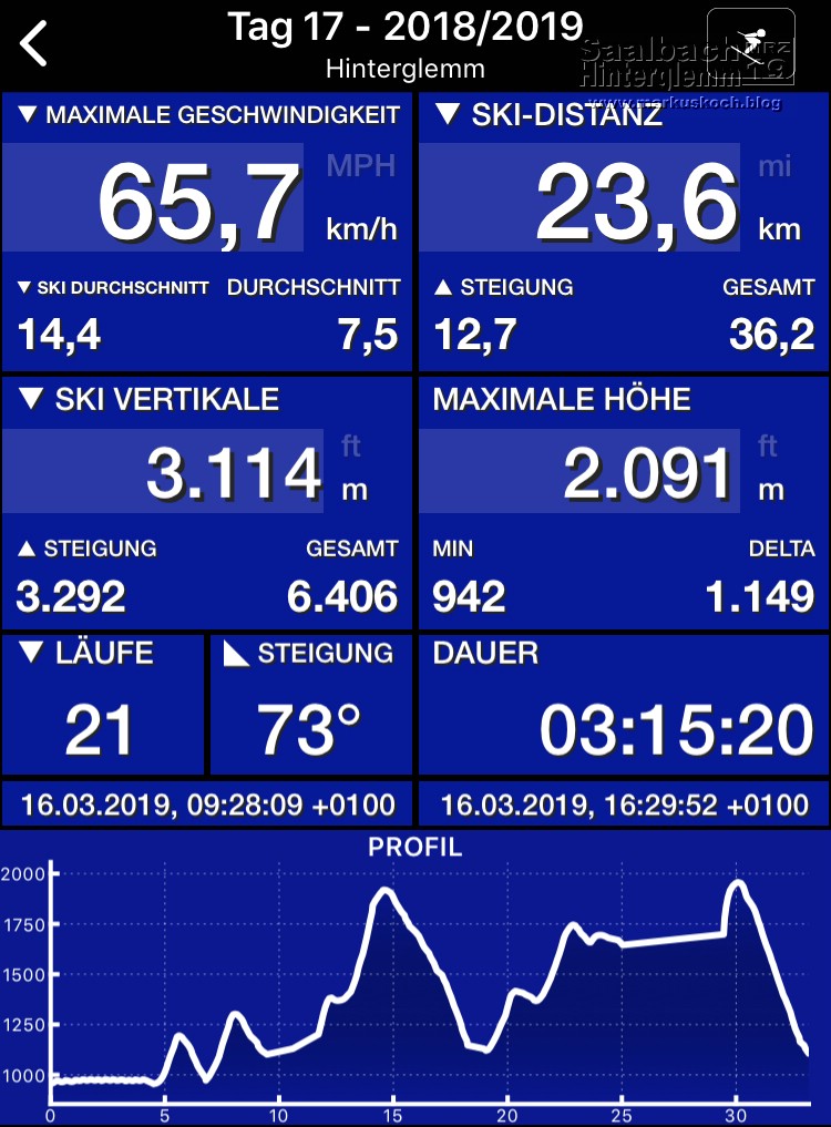 Sa, 16.03. – Saalbach-Hinterglemm – Wetter: leicht bewölkt, sonnig, ca. 0 bis +8°C