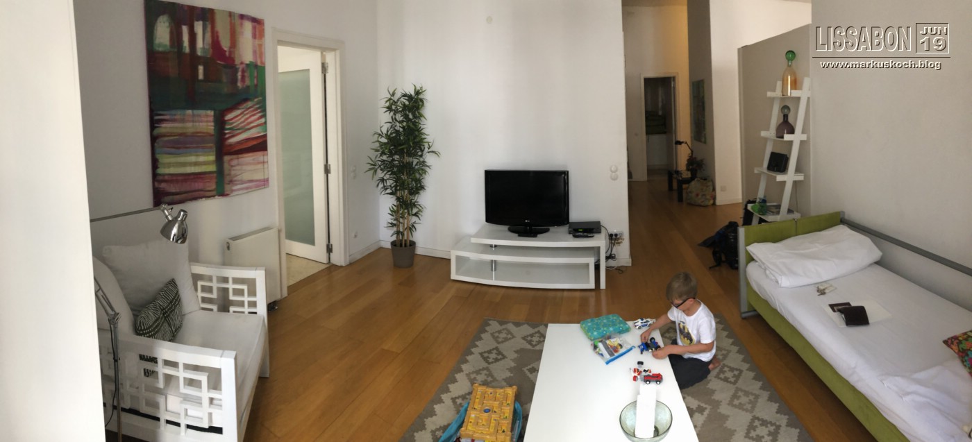 Mit dem Taxi direkt weiter vom Bahnhof Santa Apolonia zu unserer Ferienwohnung direkt am berühmten Aufzug „Elevator de Santa Justa“. Von ein paar wenigen Quadratmeter zu einer Wohnung, wo wir noch 5 Leute hätten unterbringen können.