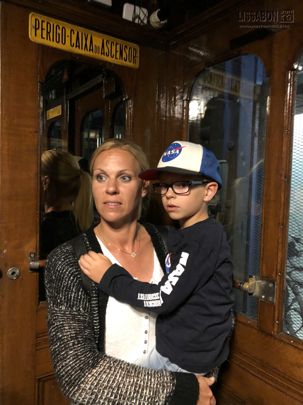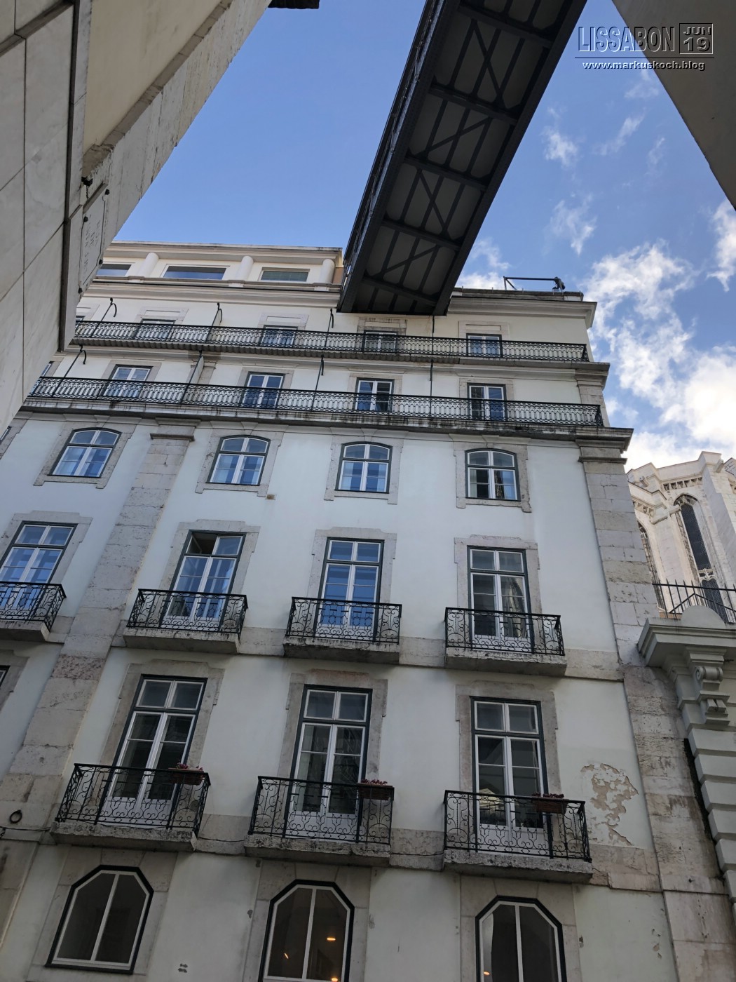 Nachdem wir die Koffer für die letzten 3 Nächte in Portugal ausgepackt hatten, fuhren wir gleich auch den Aufzug inklusive der Aussichtsplattform für den ersten Überblick über Lissabon.