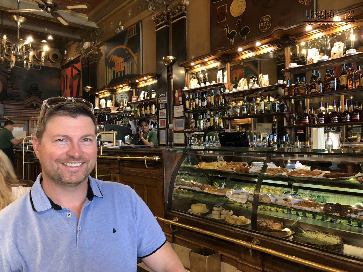 Frühstück gab es gleich um die Ecke im Literatencafe A Brasileira im Bezirk Chiado. Das ist die Grenze zu Bairro Alto, also beides fast bei unserer Unterkunft.
